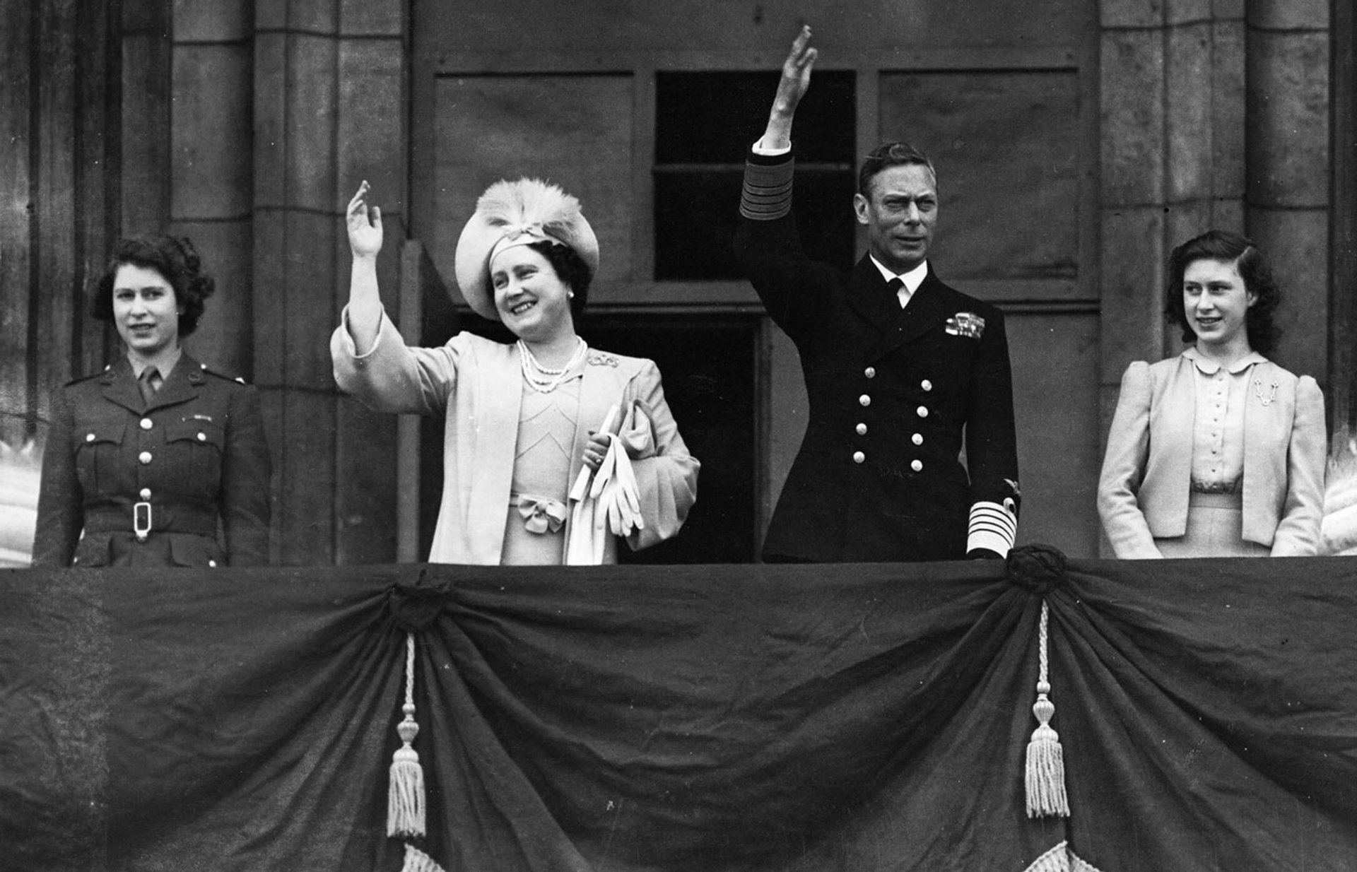 Heir presumptive: Princess Elizabeth (left) on the balcony of Buckingham Palace with Queen Elizabeth, King George VI and Princess Margaret on VE Day, 8 May 1945 © Illustrated London News Ltd/Mary Evans—www.agefotostock.com