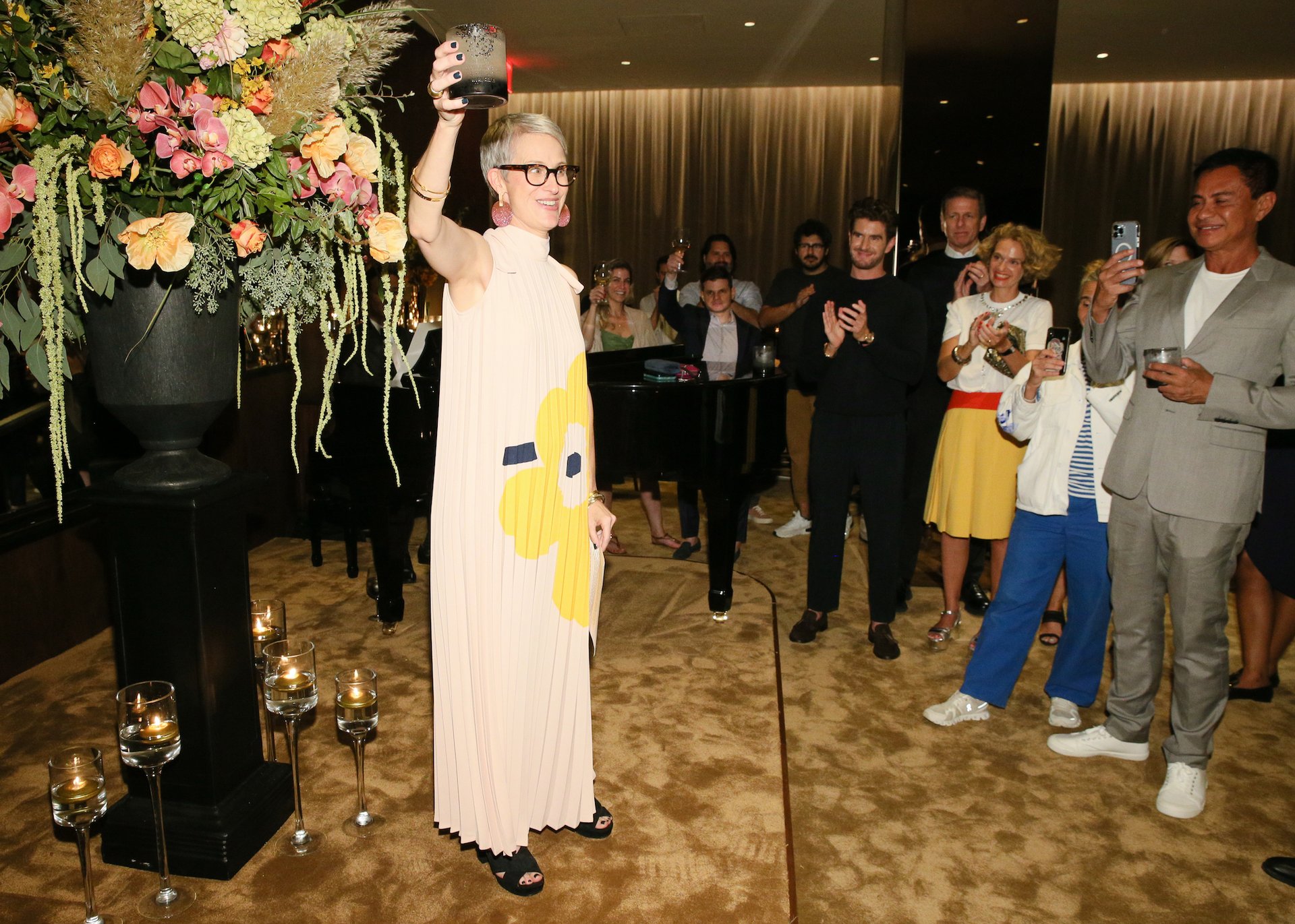 Nicole Berry, the executive director of The Armory Show, gives a toast during the fair's Collectors' Soirée at Fasano on 7 September Photo Matteo Prandoni/BFA.com