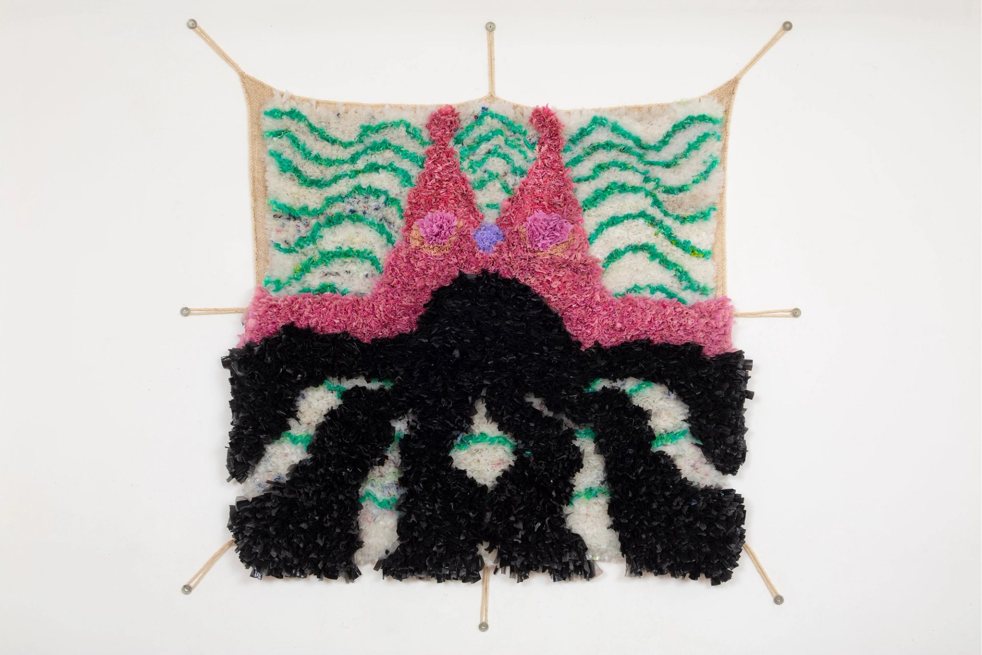McCloud is not the only artist at the fair to turn plastic bags from nuisance to medium. Instituto de Vision is showing a work by the artist Aurora Pellizzi. In one work, priced at $16,000, the artist also used this type of single-use plastic bag to create an elegant abstraction that almost looks like it was made out of a new breed of flower. For years, Pellizzi collected the bags, cleaned them and organised them by colour before weaving them together to create the resulting picture.