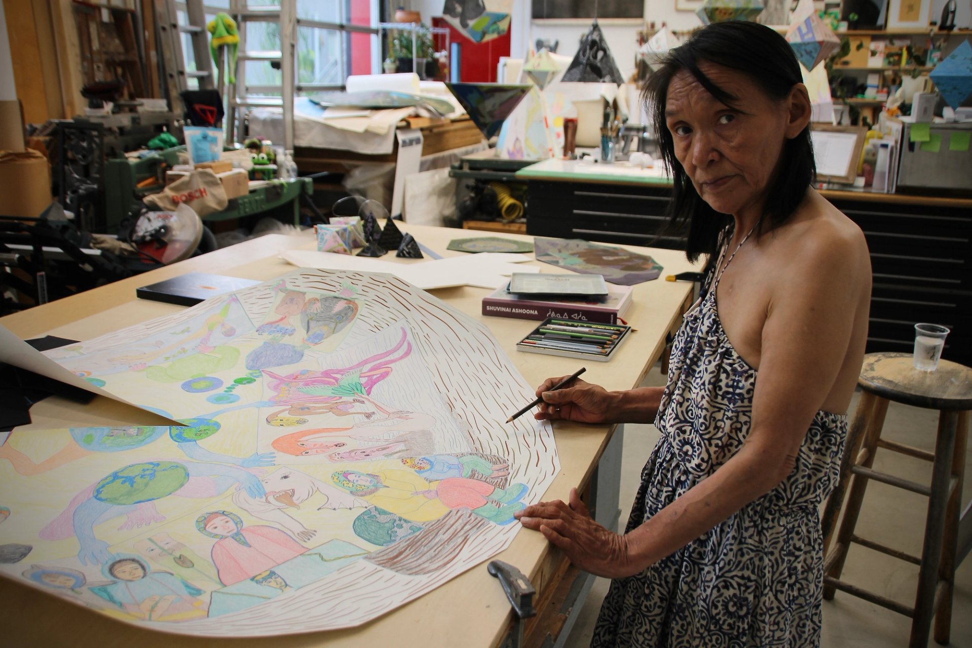 Shuvinai Ashoona's work in her Granville Island workshop. Photo: Hadani Ditmars.