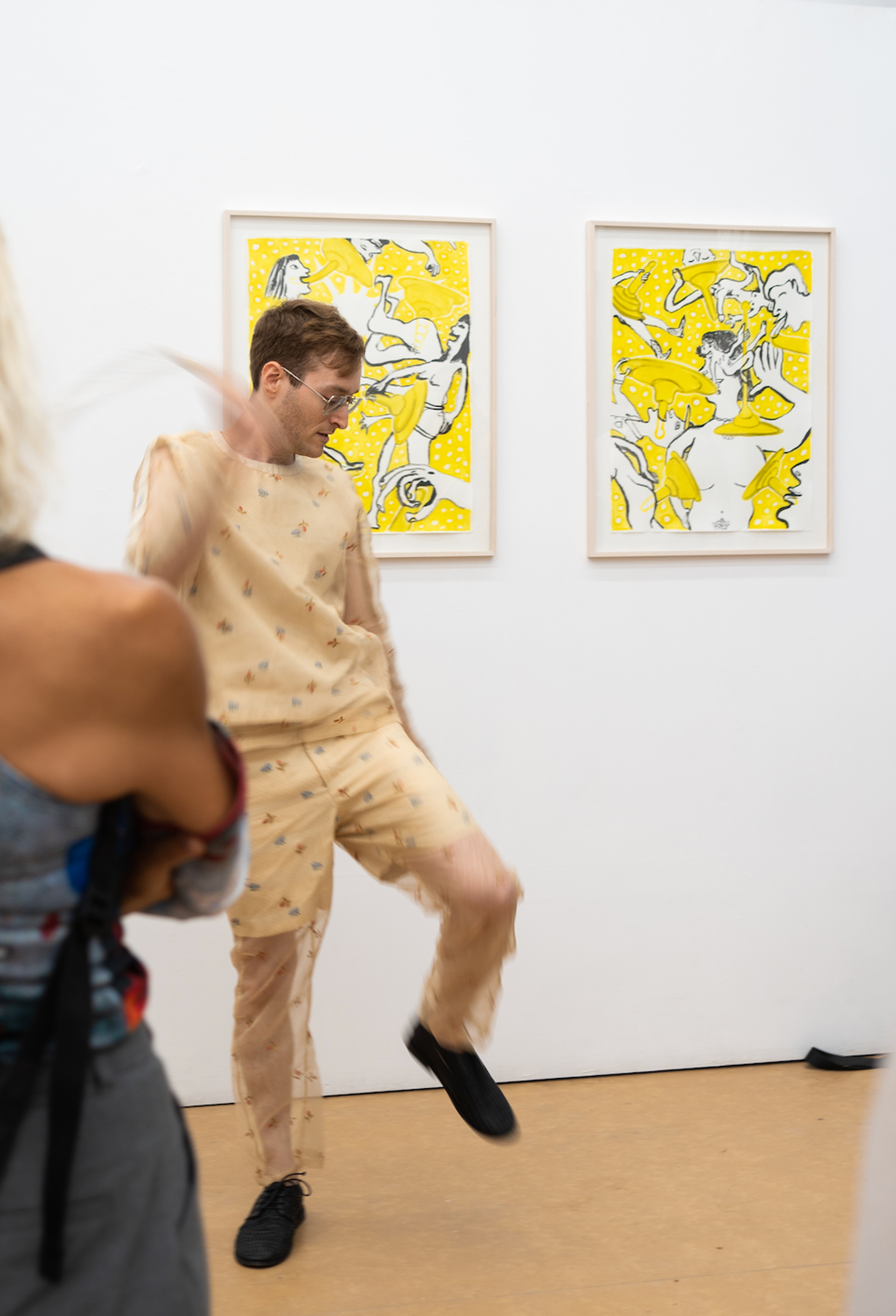 At the opening, Bernstein gave an hour-long performance that involved him telling stories and singing blessings. A number of private collectors flew in from across Europe—at the invitation of Fortune Teller—to attend the show and a party that took place later that evening. The gallery now plans to stage a second show of Bernstein's work in New York.