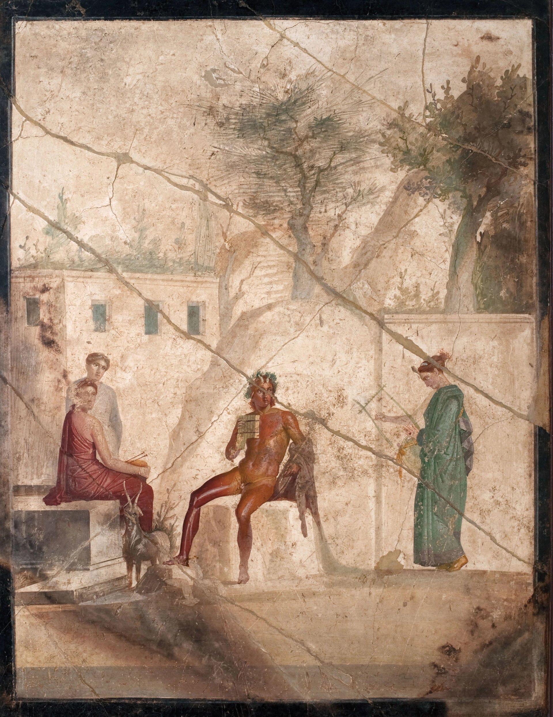 A fresco depicting Pan and Nymphs (1st century AD) MANN; courtesy of the Museo Archeologico di Bologna