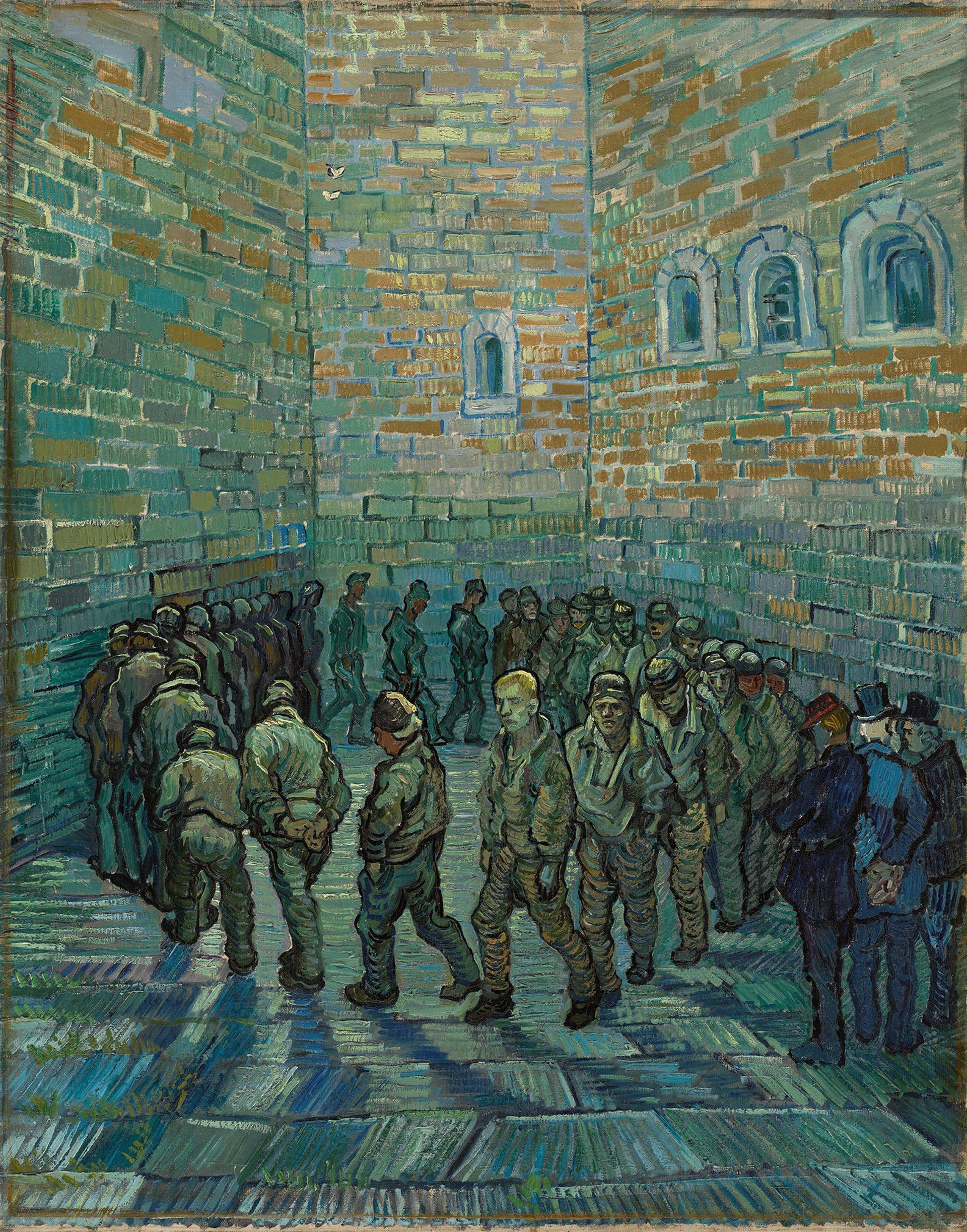 Prison Courtyard (February 1890) is a coloured version of a smaller black-and-white print by Gustave Doré, which had originally been published in the book London: A Pilgrimage. The individual print which Van Gogh chose to reinterpret in colour was Newgate—Exercise Yard. It is no coincidence that it is a prison scene, painted by Van Gogh when he was confined in the asylum.