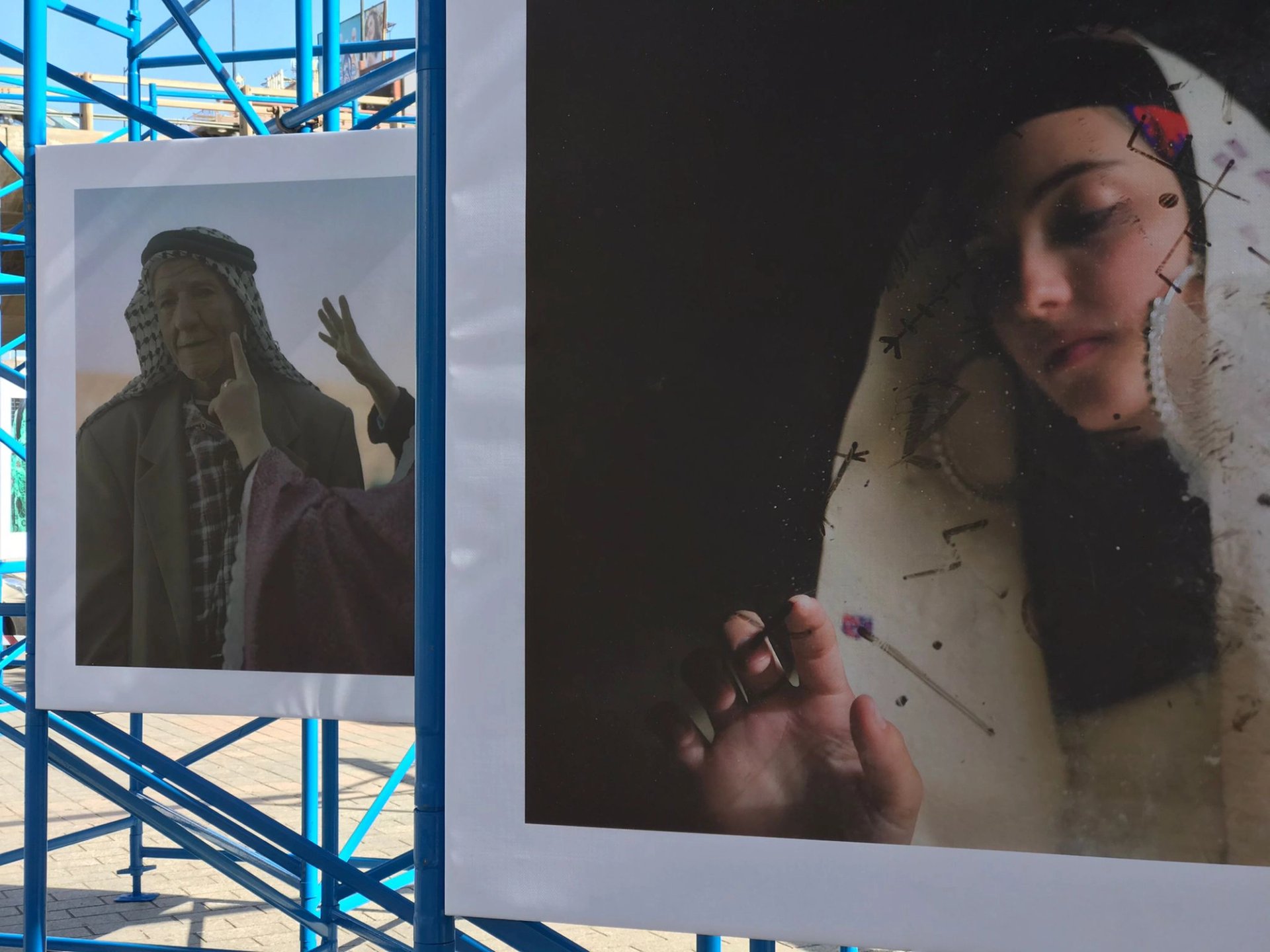 Installation view of Our Time, Even In Dreams picturing artworks lining Avenue Habib Bourguiba in Tunis featuring Valerie Jouve’s Haj et imprévu and Nada Harib’s Women of Libya. Photo: KLF