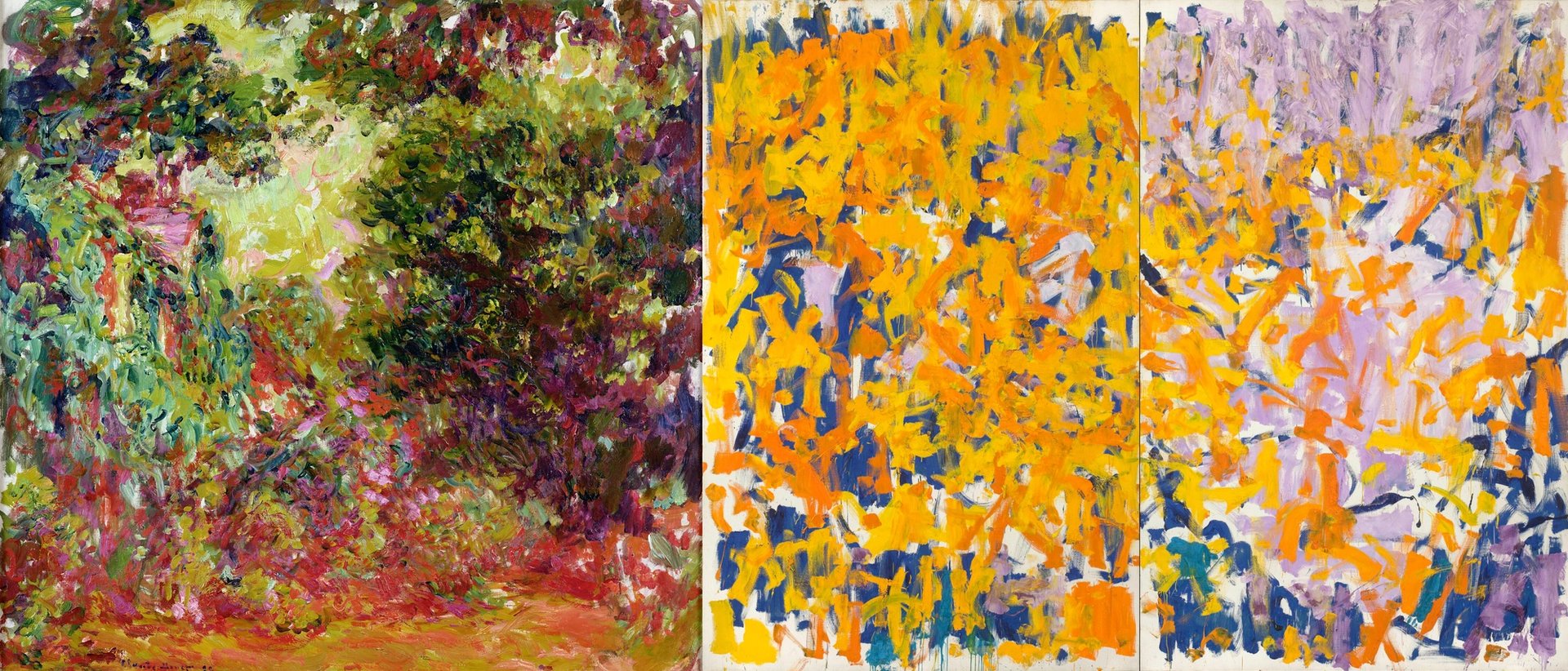 Left: Claude Monet's The Artist’s House Seen from the Rose Garden (1922-1924); Right: Joan Mitchell's Two Pianos (1980)