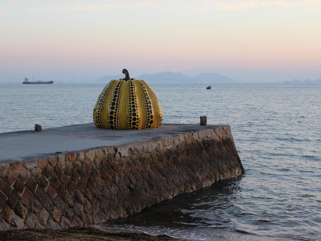 A polka-dotted pumpkin sculpture by Yayoi Kusama, blown into the sea off the island of Naoshima in Japan, is back on display following extensive restoration. The piece, entitled Pumpkin (1994), sat on the tip of a pier at the Benesse Art Site Naoshima in southern Japan but was dislodged by the stormy weather in the trail of Typhoon Lupit last August.