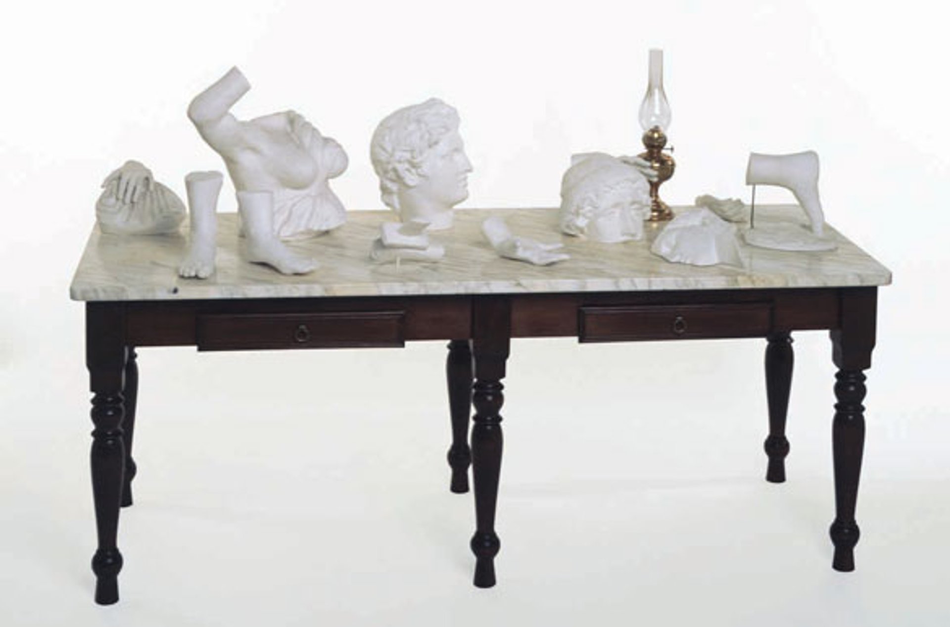 The Apollo mask was a recurring element in Kounellis’s work, sometimes worn by the artist in other performances (including one filmed by Bill Viola, which will be in the show), sometimes broken into plaster fragments that were placed in his wall-like installations.