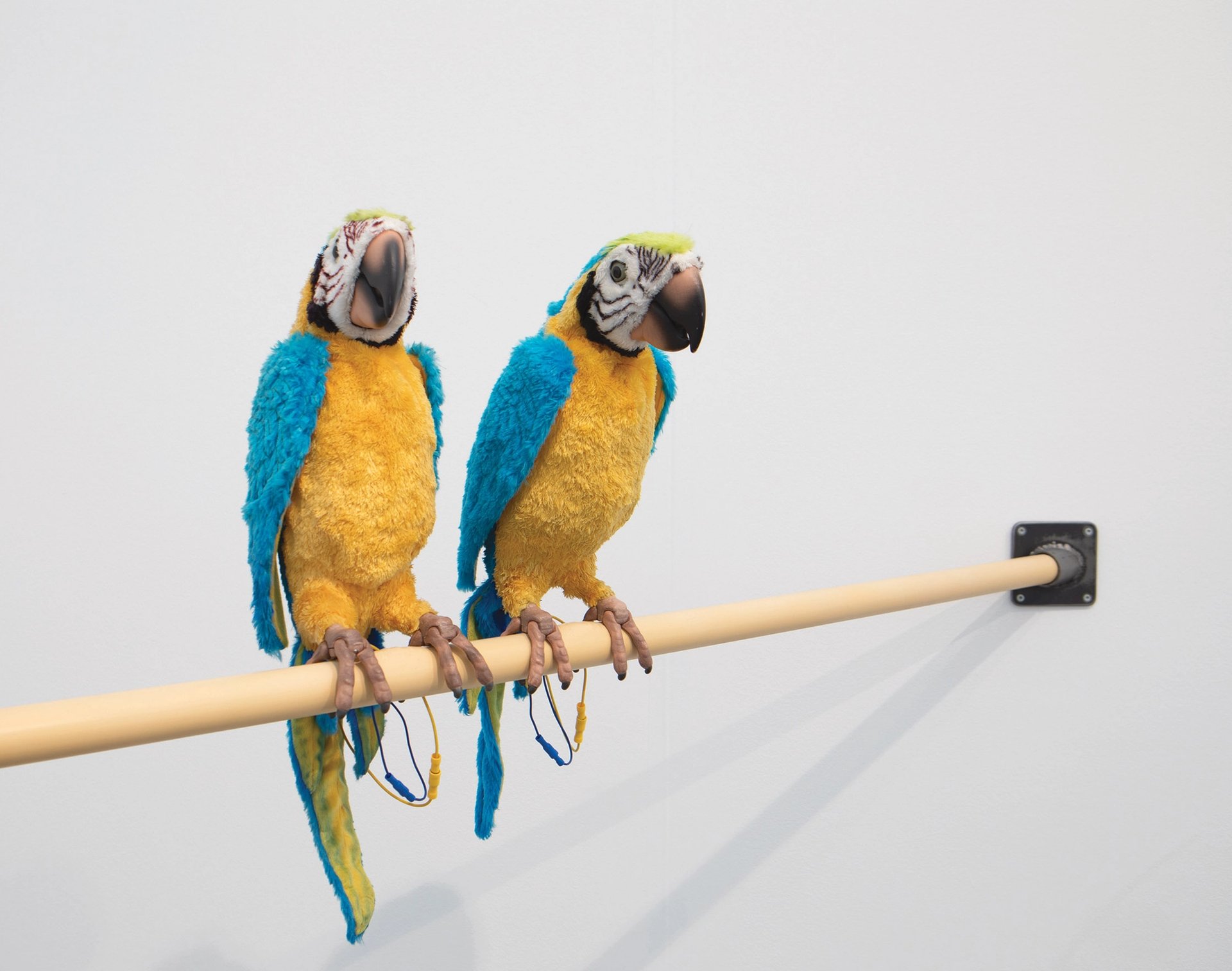 Anyone remember Squawkers McCaw? The animatronic parrot was launched in the mid-2000s by Hasbro—a life-size toy that would talk, eat toy crackers and even sing and dance. German artist Gerrit Frohne-Brinkmann has gathered a cluster of rather sorry-looking Squawkers on internet auction sites. Sitting on metal “branches” across the stand, damaged and soiled (the installation is called Dirty Parrots), they still shuffle, flap their wings and flutter their eyes but seem somewhat chastened amid the Frieze hubbub. Apparently, they also utter remembered statements from previous owners, but I only heard the occasional, muted caw. Of course, they’re a symbol of technological progress—clunky anachronisms compared to today’s virtual cute companions. Corralled in this mini-zoo, they are a rather elegiac presence.