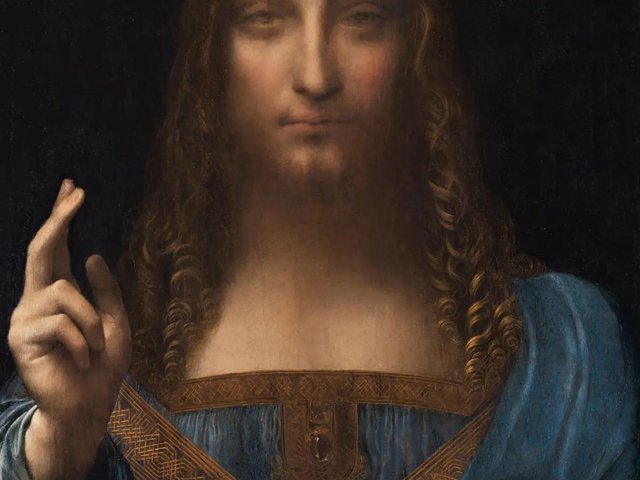 Leonardo's portrait of Jesus Christ has been dubbed “the male Mona Lisa”, depicting Christ raising his right hand in a blessing. A transparent orb is balanced in the palm of his left hand.