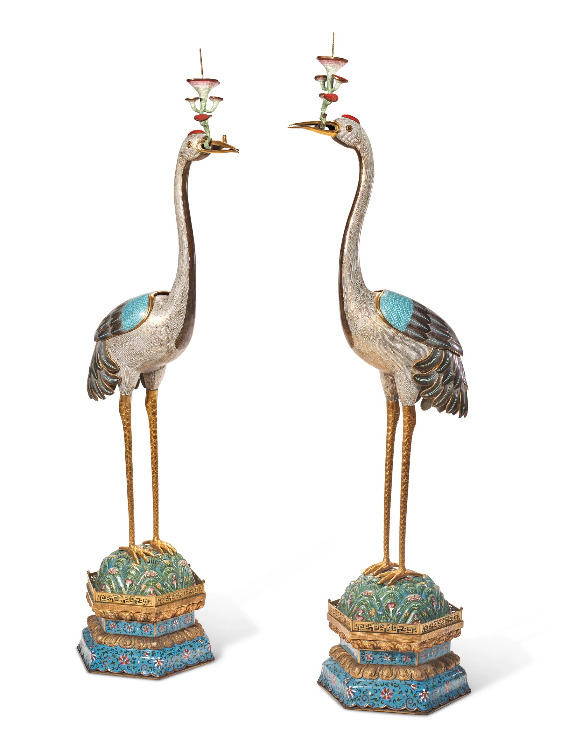 A Pair of Massive Chinese Cloisonné and Champlevé Enamel Crane-Form Censers, Qing dynasty, 18th-19th century Courtesy Christie's Images Ltd.