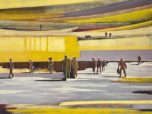 After relocating to London in the late 1980s, she began a series of paintings critiquing the veil – notably the tongue-in-cheek The Impossible Dream (1989) depicting women in niqab struggling to eat ice-cream cones. Her first show outside the Middle East was Women and Magic in London in 1992 in which she drew widely from ancient Sumerian, Assyrian and Egyptian sources. A highlight was The Hands of Fatima (1989) depicting a group of women in colourful niqabs, holding up traditional hamsas, evoking both a mystical and feminist power.