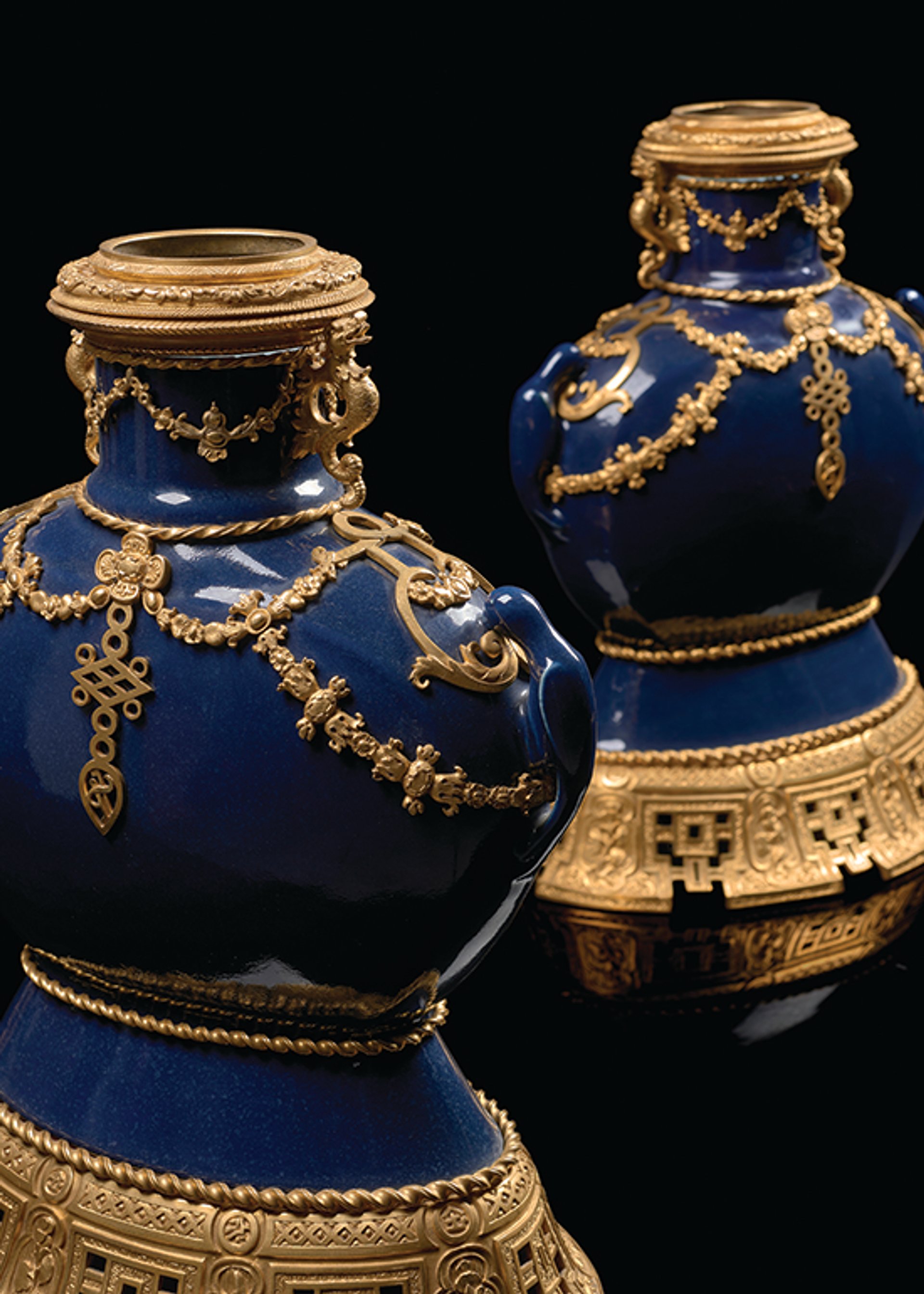 Believed to have been commissioned by the Chinese Emperor Qianlong (1711-1799), the blue gourds (or vessels—this shape is often equated with blessings) are positioned on mounts thought to have been made by the English craftsman Benjamin Lewis Vulliamy. “These magnificent gourds, rarely presented as a pair, will not fail to arouse the interest of collectors of Asian art from all continents,” says Stéphane Aubert, an associate director and auctioneer at Artcurial. The total estimate for the sale is €1m.