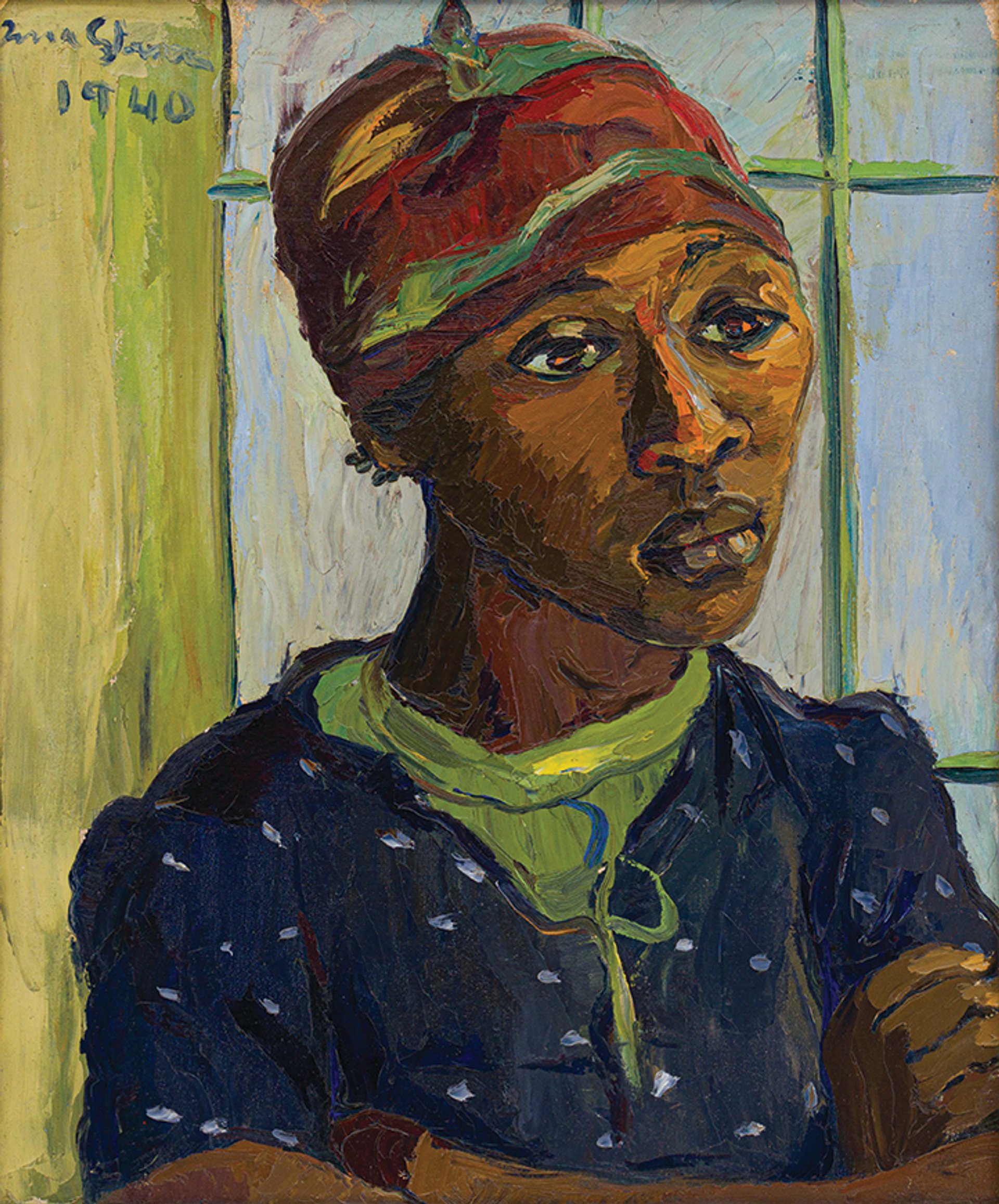 “Unlike [Irma Stern’s] depictions of restrained Arab clergy and beguiling Watusi royalty, all in traditional dress, African Woman is remarkably contemporary in spirit. The sitter wears a shimmering blue dress with white polka dots, and her gentle gaze and demeanour evoke a moving sense of familiarity,” says Alastair Meredith, a senior art specialist at Strauss & Co. “The long-overdue interest in women Modernists drives demand for her paintings, both in her native South Africa and elsewhere,” he adds.