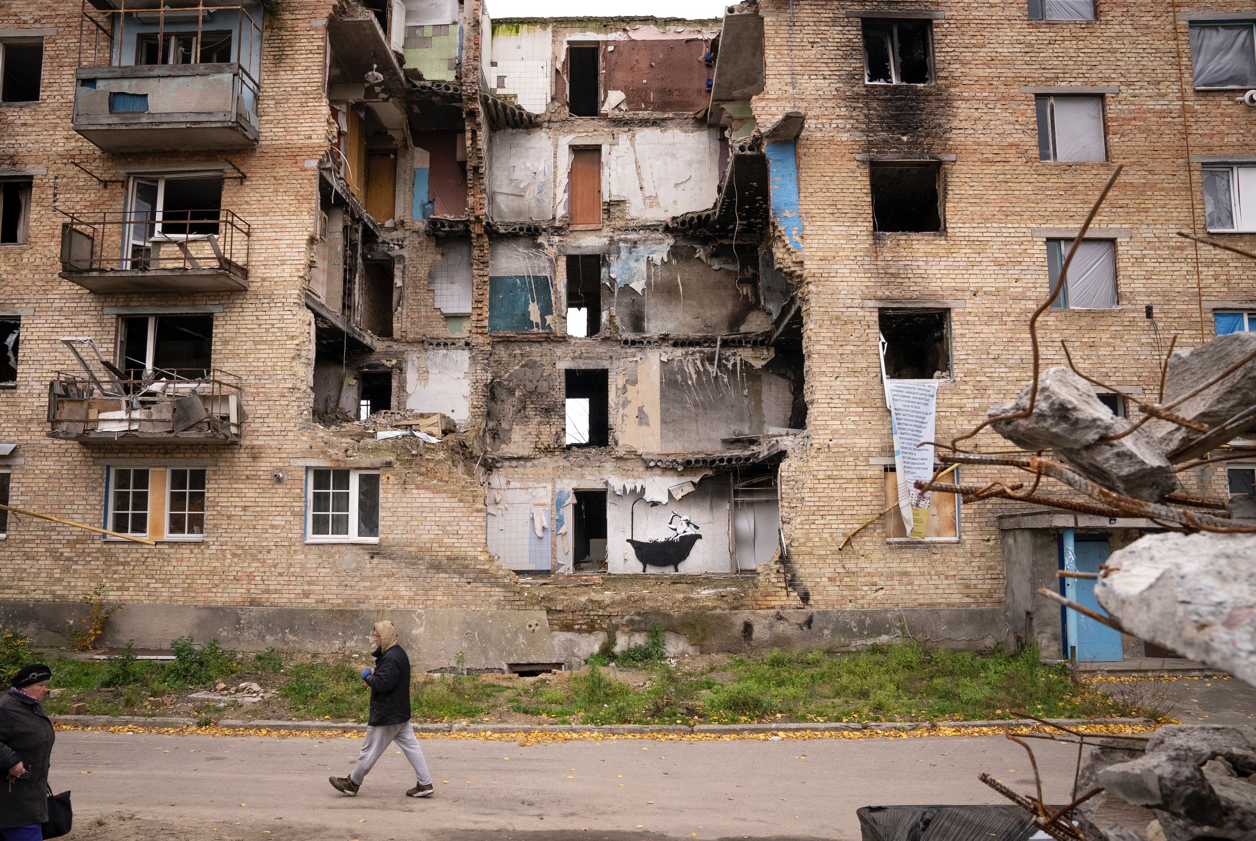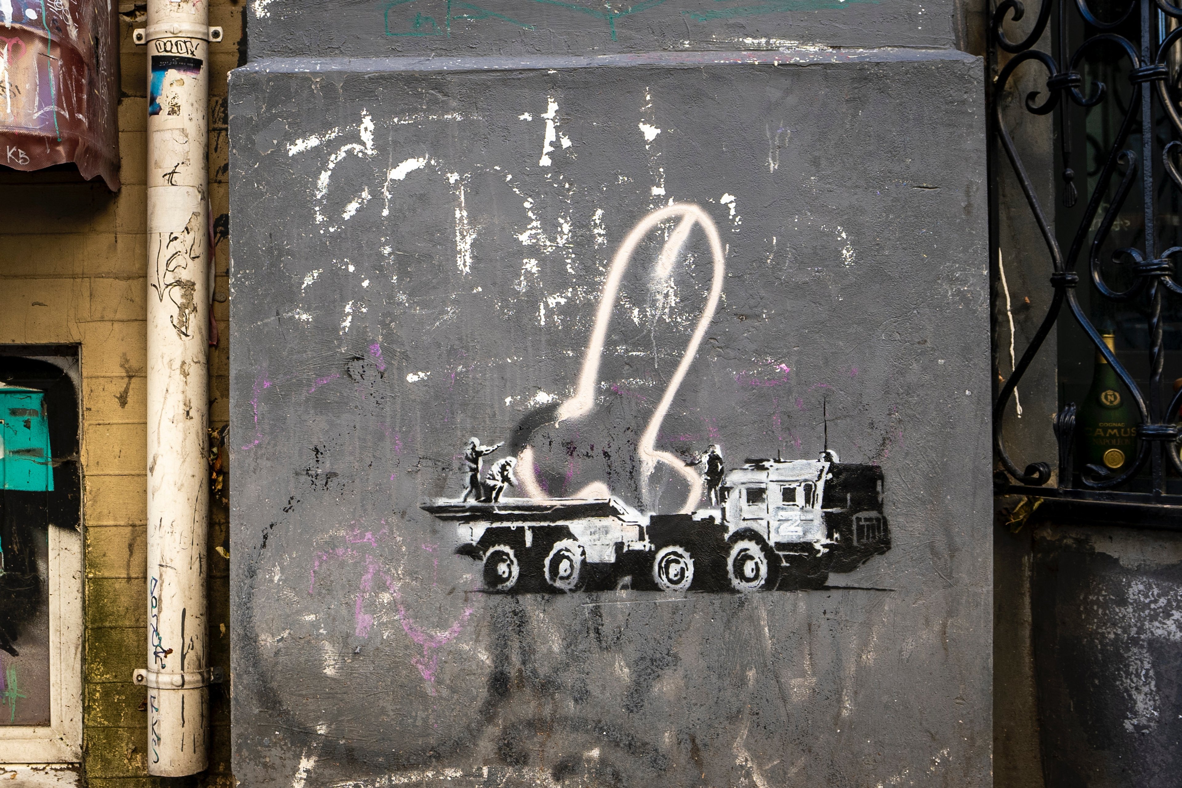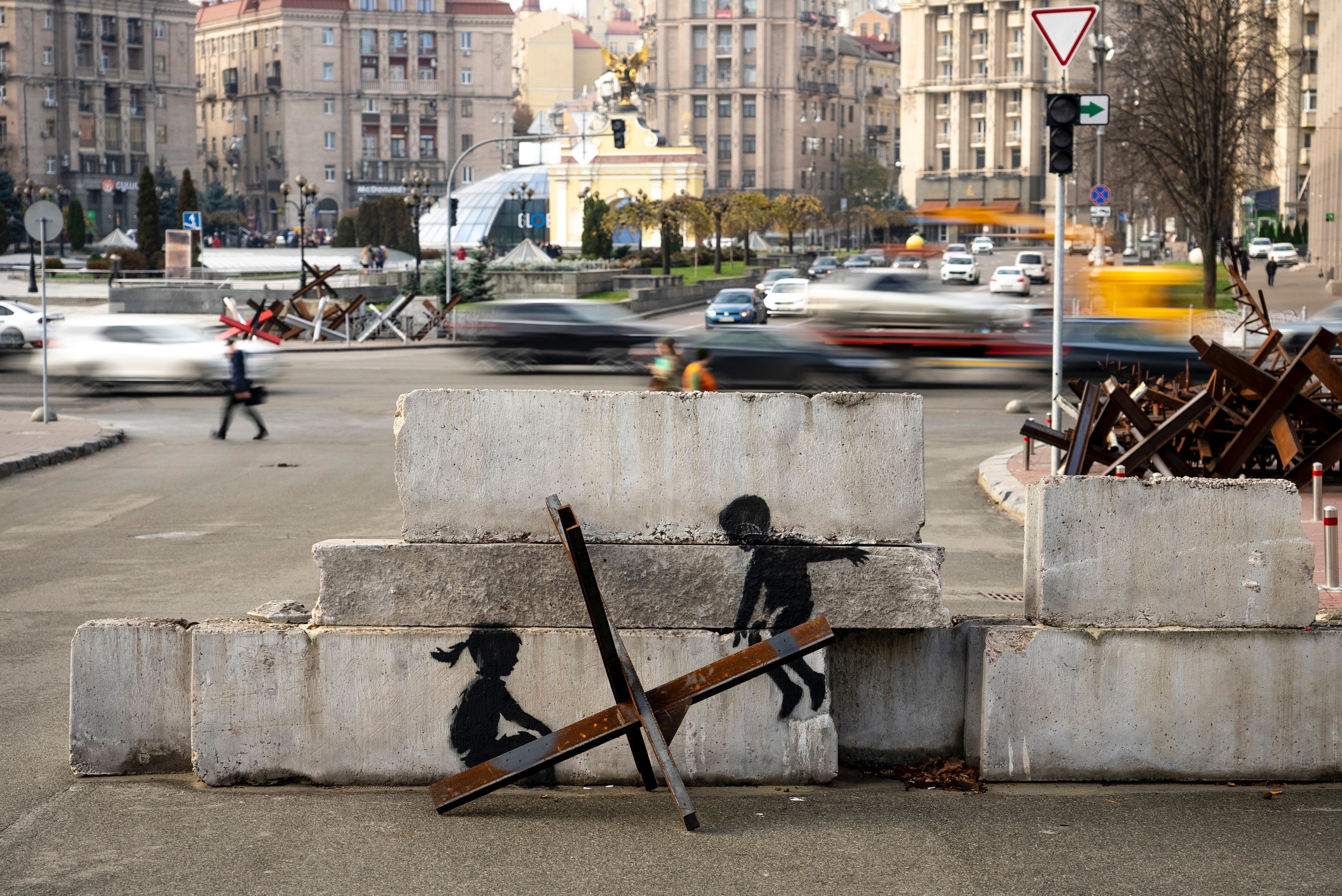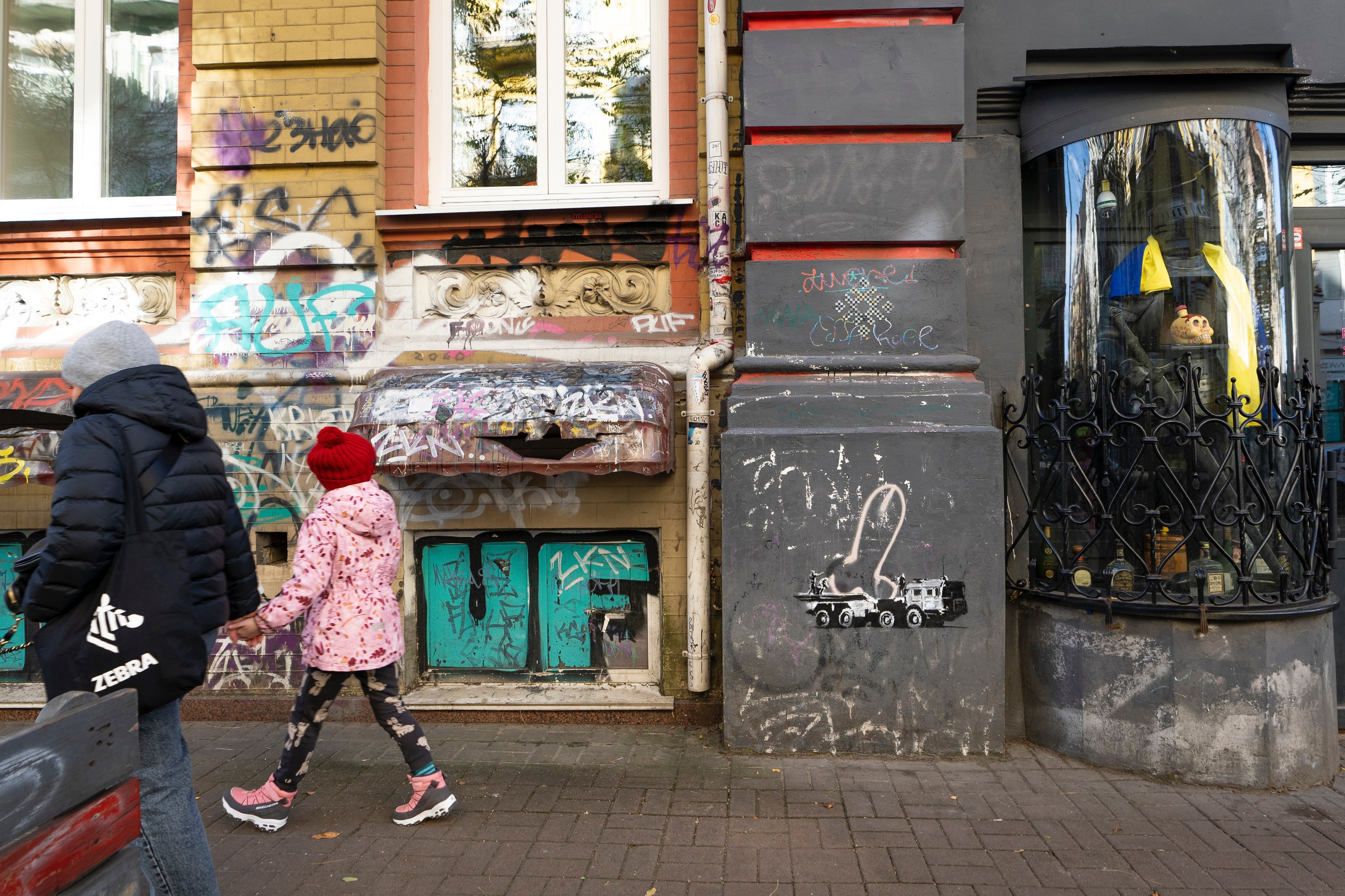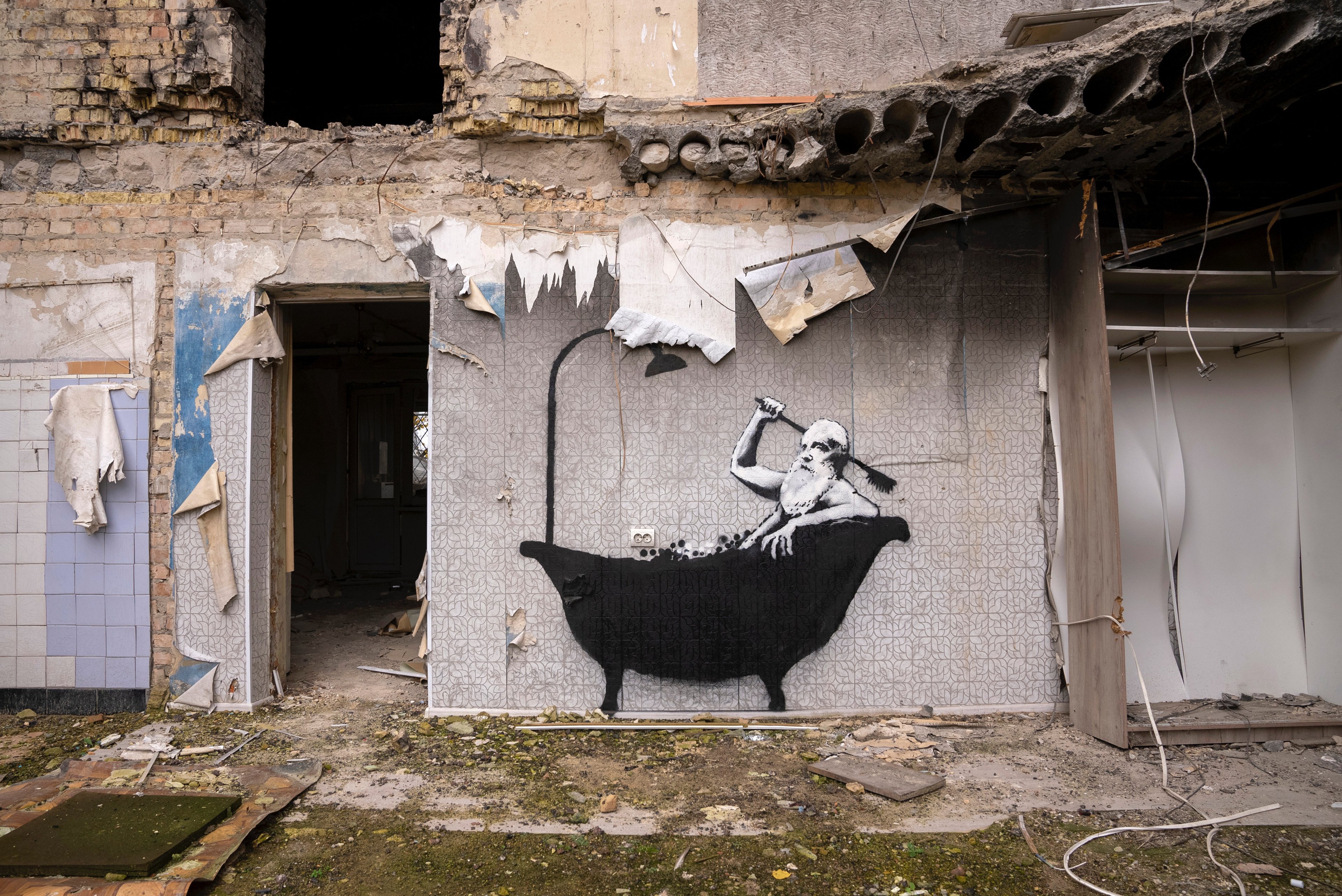 The new works are Banksy’s first public murals in more than a year, though this is not the first time his work has been associated with Ukraine. In March, a print of one of his most famous anti-war pieces, CND Soldiers, was sold at auction, raising $106,505 for a children’s hospital in Kyiv. The original mural first appeared outside the Houses of Parliament in London in 2003, during protests against the war in Iraq.