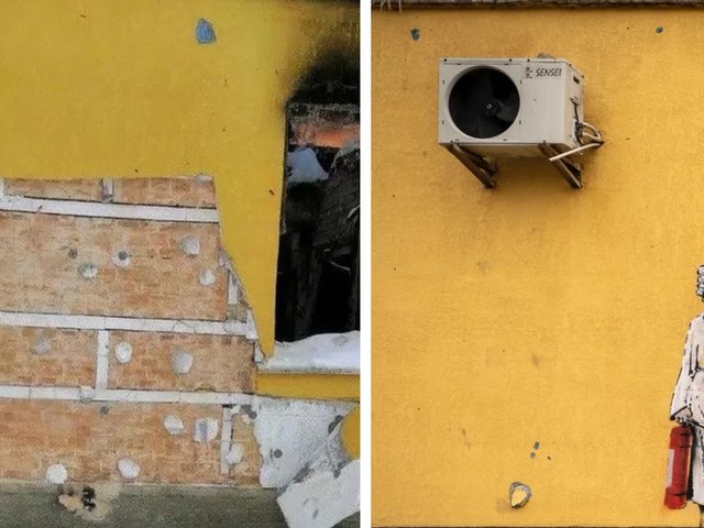 Speculation had been mounting that the anonymous artist was in the war-torn country after three works were spotted last week. One mural depicts a man said to resemble the Russian president, Vladimir Putin, being thrown to the floor during a judo match with a young boy—Putin holds a black belt in the sport. Another work shows two children using a metal tank trap as a seesaw, while a third mural, painted within the ruins of a bombed building, is of a gymnast doing a handstand.