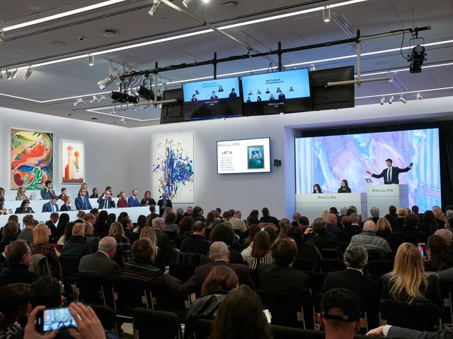 The global art market continued to soldier on with Phillips New York’s evening sale of 20th century and contemporary art taking in a respectable though measured $138.7m (with fees) on Tuesday (15 November). The 44 lots offered carried a pre-sale estimate before fees of $114.8m-$159.5m. The hammer total was $115.7m, a brushstroke over the low estimate.