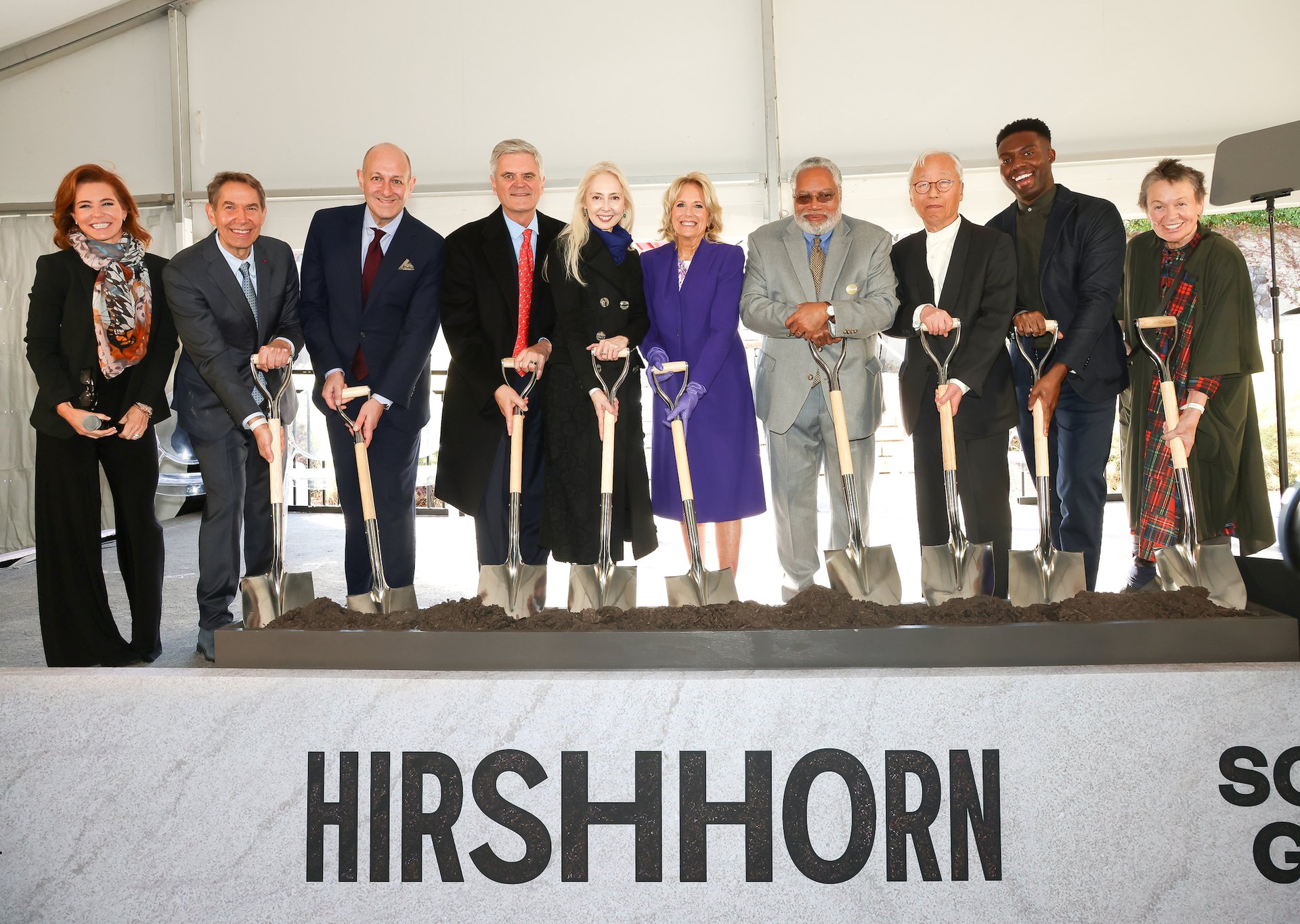 From left to right: Stephanie Ruhle, MSNBC host; artist Jeff Koons, Dan Sallick, chair of the Hirshhorn board of trustees; Steve Case, chair of the Smithsonian board of regents; Melissa Chiu, director of the Hirshhorn Museum and Sculpture Garden; first lady Jill Biden; Smithsonian secretary Lonnie Bunch; Hiroshi Sugimoto, artist and architect of the Hirshhorn Sculpture Garden revitalisation, artists Adam Pendleton and Laurie Anderson at the 16 November groundbreaking on the National Mall Courtesy of the Hirshhorn. Photo by Tony Powell
