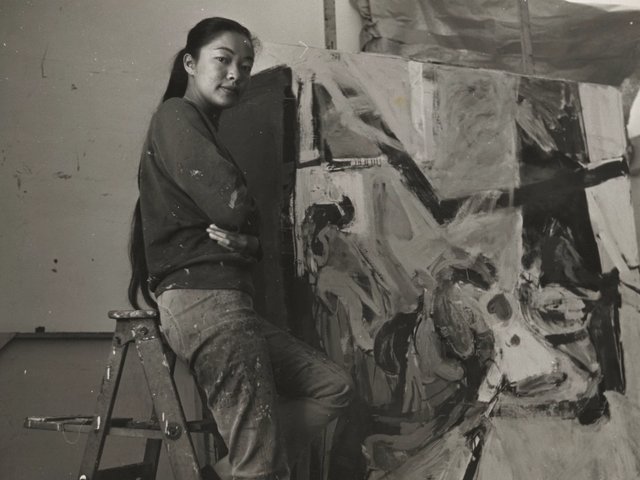 When she eventually returned to San Francisco, she became involved in community arts groups, and starting in 1980 she ran the South of Market Cultural Center (SOMArts) for several years. At the end of 1984 she had a chance to visit Korea, Japan and China on a Fulbright scholarship. She studied Chinese calligraphy at the Zhejiang Art Academy in Hangzhou, an experience which inspired further fusion of Eastern and Western elements in her abstract paintings.