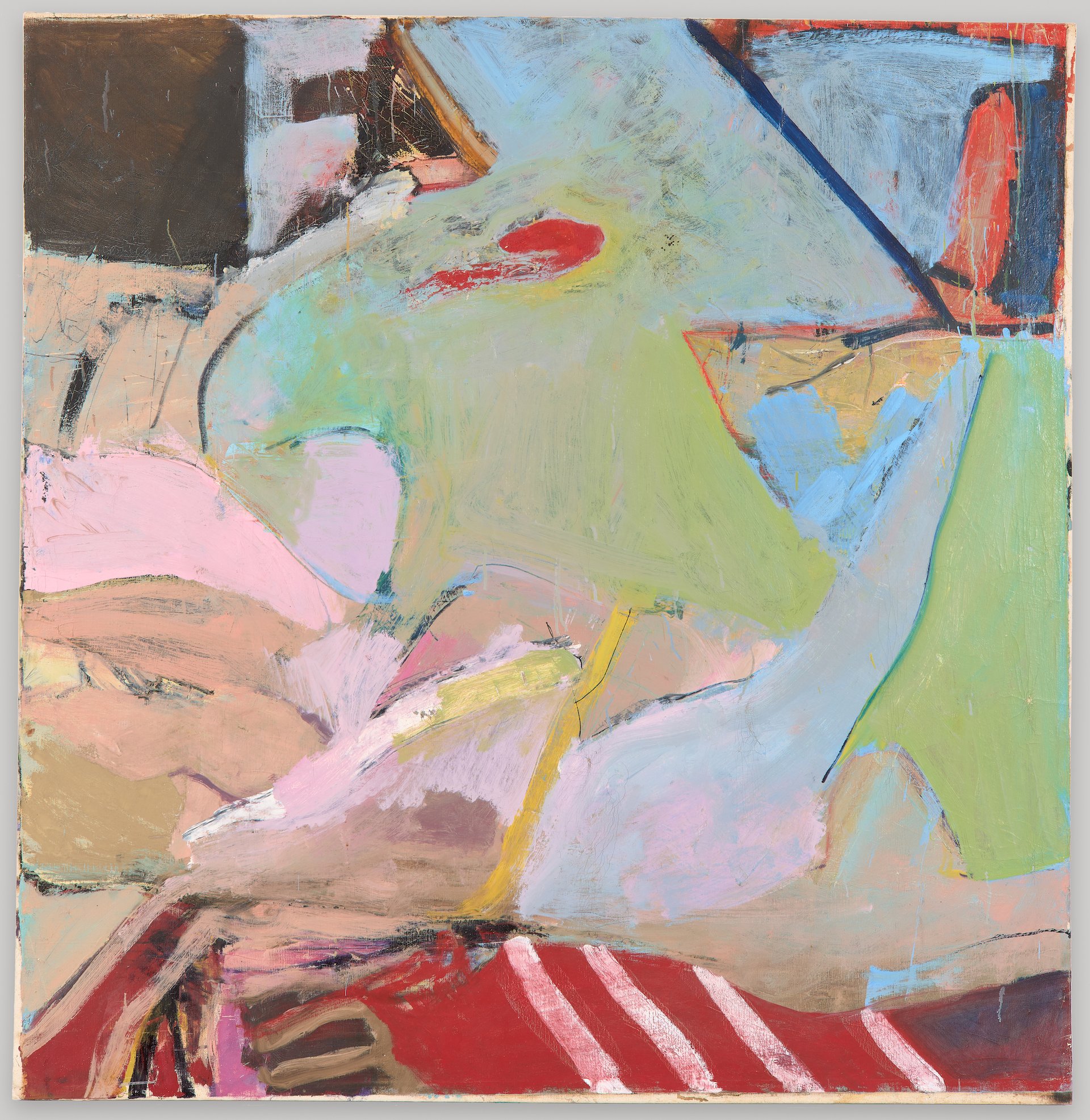 That year she also had a North Beach studio, where she posed for a photo taken at ground level. The artist is stretched out, head propped up on her right arm and looking confidently into the camera. Her large canvases fill the background, including her abstracted version of Velázquez’s Las Meninas (1656). She was part of the Beat art scene, mingling with Joan Brown, Jay DeFeo and Carlos Villa. At the end of the year she had her first solo show, at the avant-garde Batman Gallery, but she was barely eking by financially, working odd jobs to support herself.