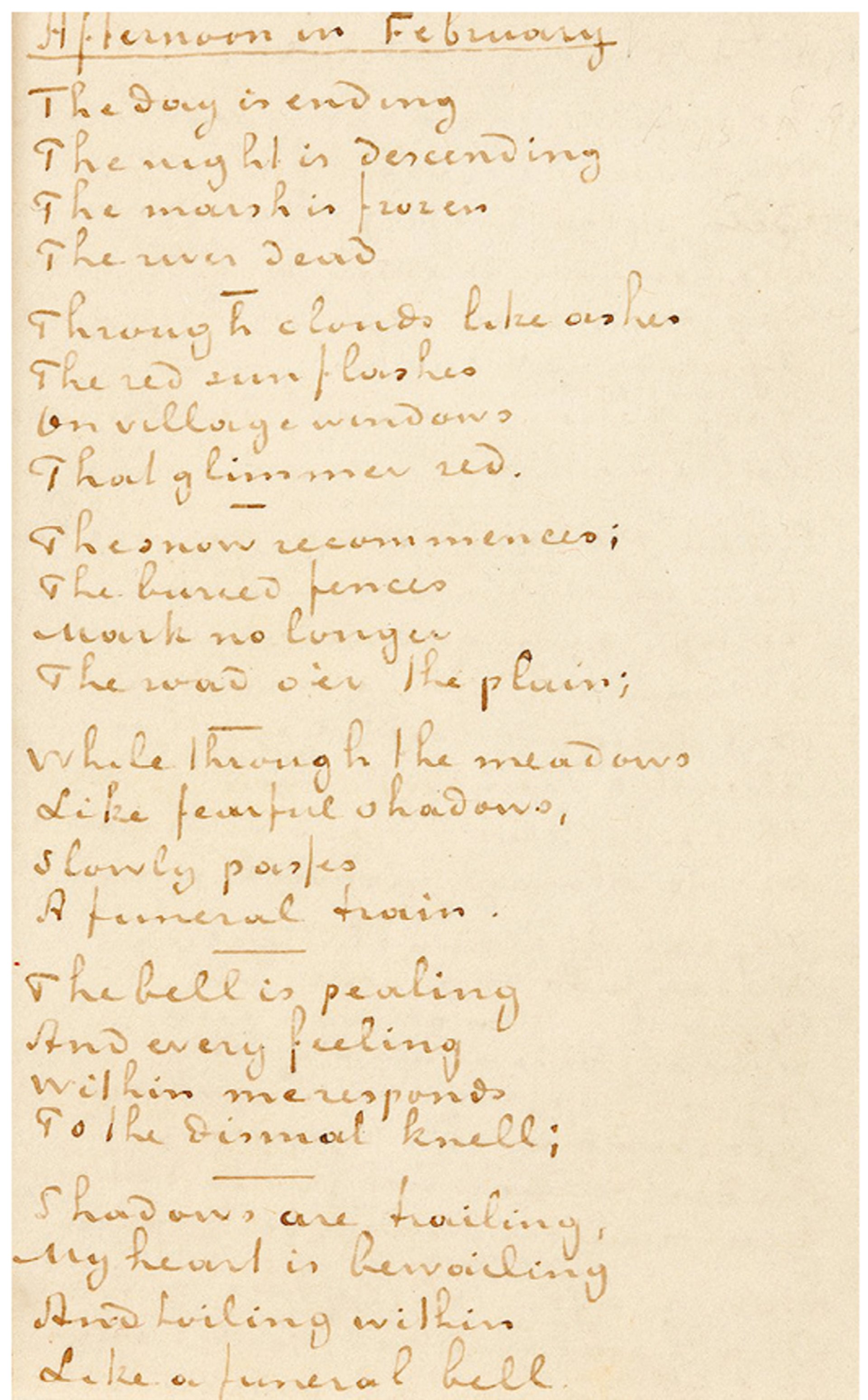 Van Gogh’s transcribed text of Longfellow’s Afternoon in February, the first six stanzas Credit: © courtesy of Aguttes, Neuilly-sur-Seine