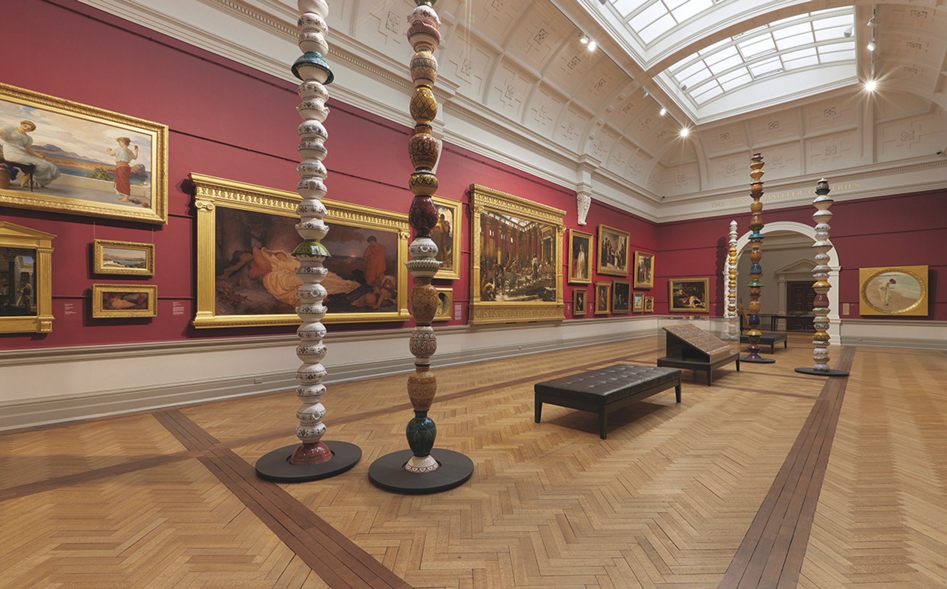 Installation view of the Grand Courts at the Art Gallery of New South Wales, featuring Pascale Marthine Tayou's Colonnes Pascale 2012 Photo: © Art Gallery of New South Wales, Jenni Carter