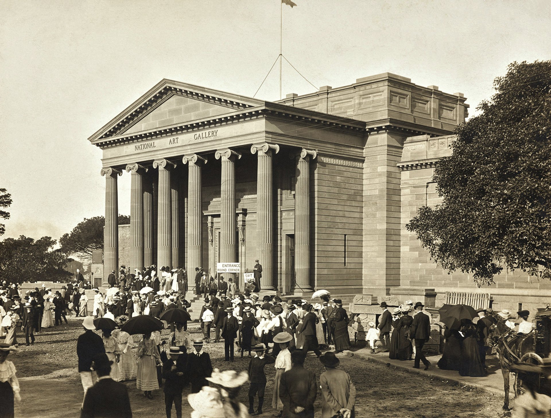 The Art Gallery of New South Wales’s first home was built in 1879 and stood across the road from the site of Sydney Modern. It was built as the Fine Arts Annexe of that year’s Sydney International Exhibition and was the first freestanding public art gallery in Australia. “Even though the National Gallery of Victoria was founded ten years before us, it shared premises and administration with the public library and museum as was the custom in all Australian states apart from New South Wales,” says Steven Miller. On 22 September 1880, after the Sydney International Exhibition had closed, the Fine Arts Annexe was officially dedicated as the Art Gallery of New South Wales. In pride of place in the first exhibition was Ford Madox Brown’s painting Chaucer at the Court of Edward III (1847-51).
