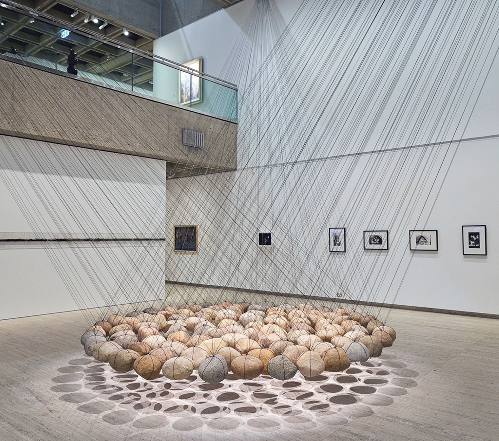 This is a work that is really dear to Australians. Ken Unsworth is a Sydney artist, born in 1931, and he was quite a major player in the 1970s, part of that movement we saw across the world in which performance and the body became so important to artists. The suspension of those stones is really quite amazing. There are 103 river stones weighing 16 kilos each and they are suspended so perfectly that they are all equidistant from each other. You really feel that they are suspended by some kind of force, but you can also see all of the threads that equally form the artwork. The artist says it is a chorus of stones, singing their own songs.