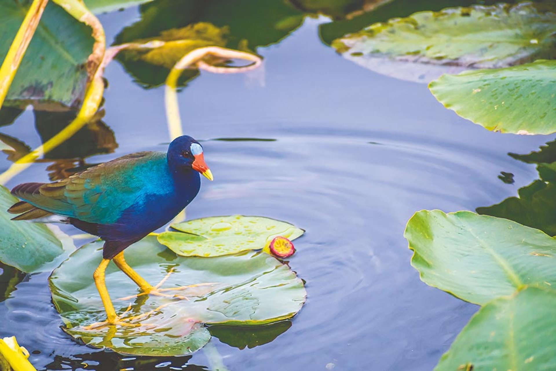 A striking Purple Gallinule, a wading bird found in the national park Cheri Alguire