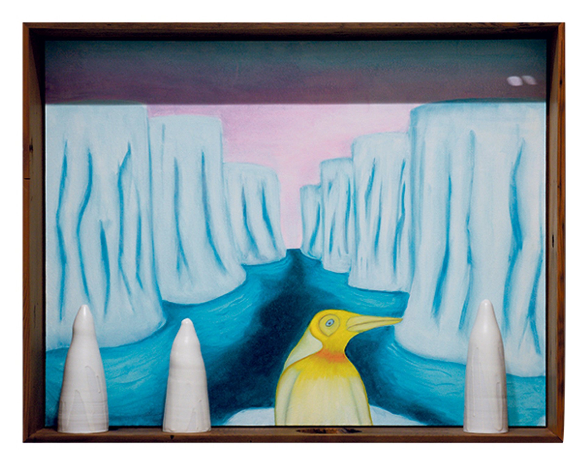 This icy scene was originally exhibited at Kahn’s solo show with the Los-Angeles gallery Vielmetter, titled Forest for the Trees, in summer this year. It is part of a series of works that depict animals in different environments and reference climate change. The frame of the work is made of wood sourced by the artist and it includes “ceramic vessels that mimic icicles in this glacial environment” says Olivia Gauthier, the gallery’s assistant director. You can save this endangered specimen for a cool $24,000.