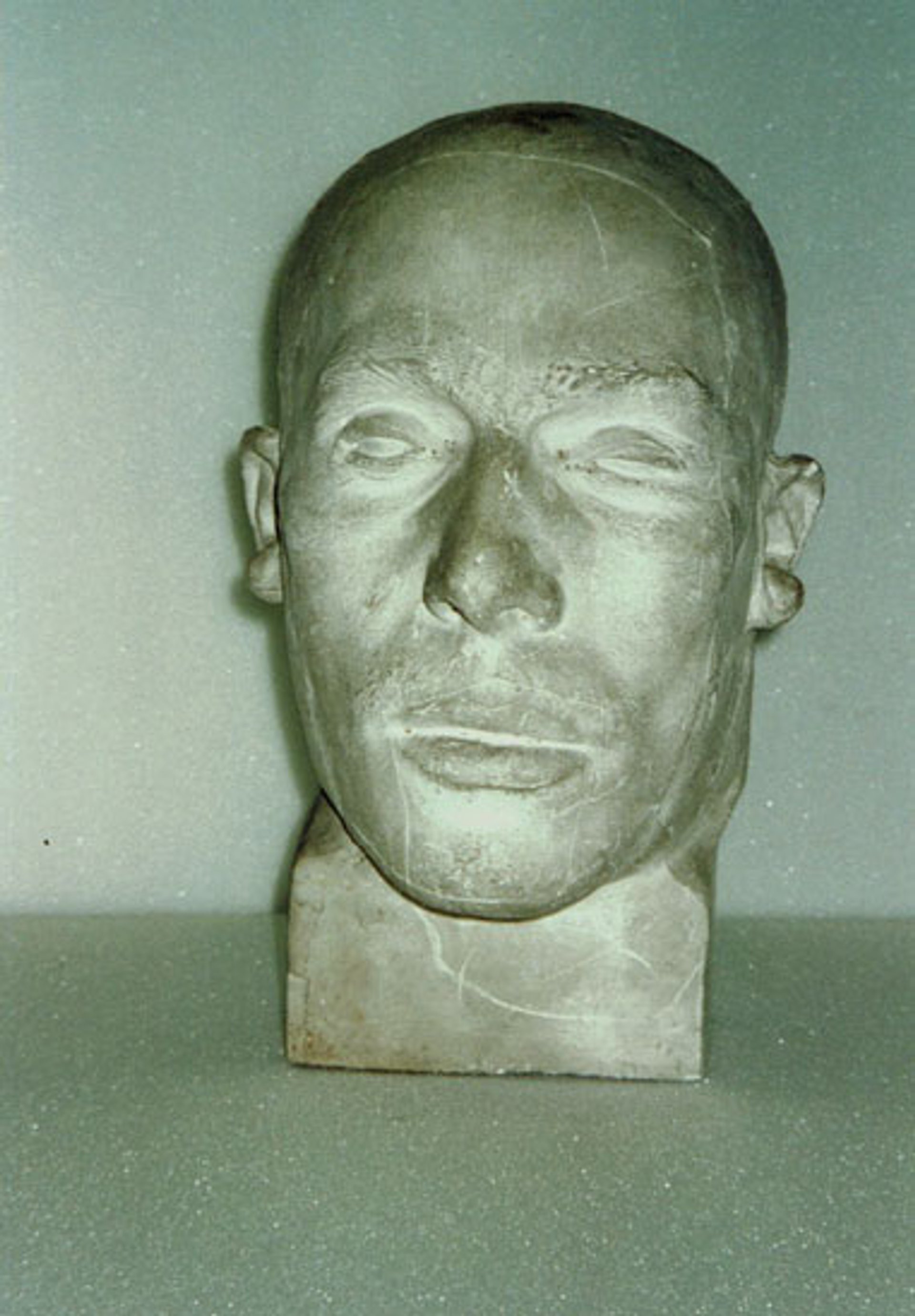 Plaster death head of guillotined murderer Arsène-Raymond Lescure (1855), owned by Dr Gachet Wellcome Collection, London (on long-term loan to Science Museum, London)