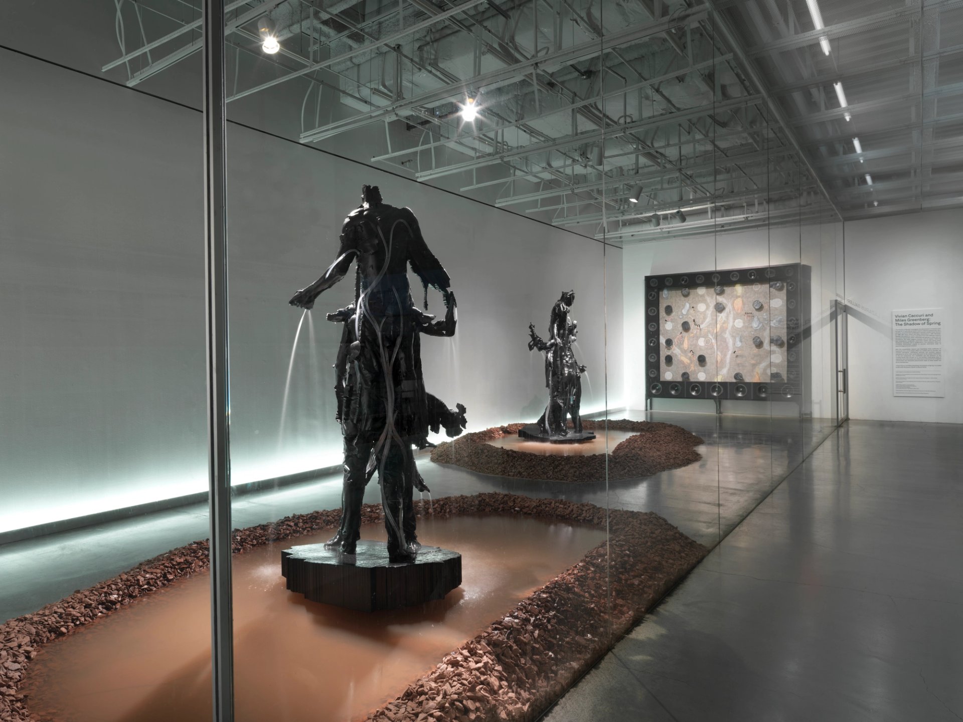 Installation view of Vivian Caccuri and Miles Greenberg: The Shadow of Spring at the New Museum, New York. Photo: Dario Lasagni. Courtesy New Museum.