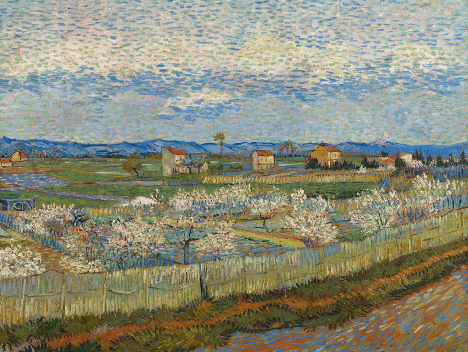 Van Gogh’s Peach Trees in Blossom (May 1889), Courtauld Gallery, London; incident 30 June 2022; protesting group Just Stop Oil; damage to 18th-century frame Credit: Courtauld Gallery, London