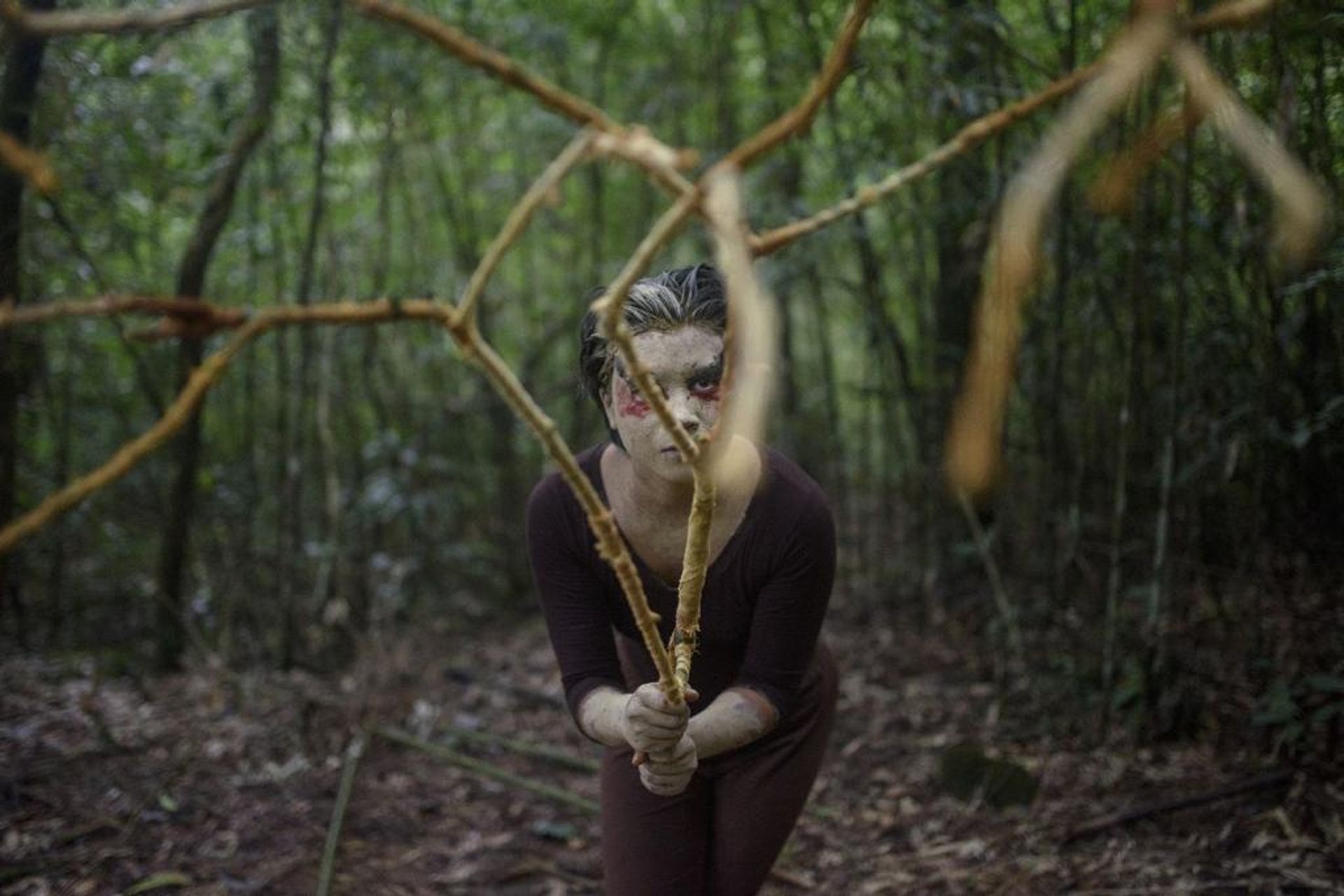 Process image of a performance by Lapdiang Syiem, co-commissioned by the Kiran Nadar Museum of Art, the Samdani Art Foundation and Art Dubai