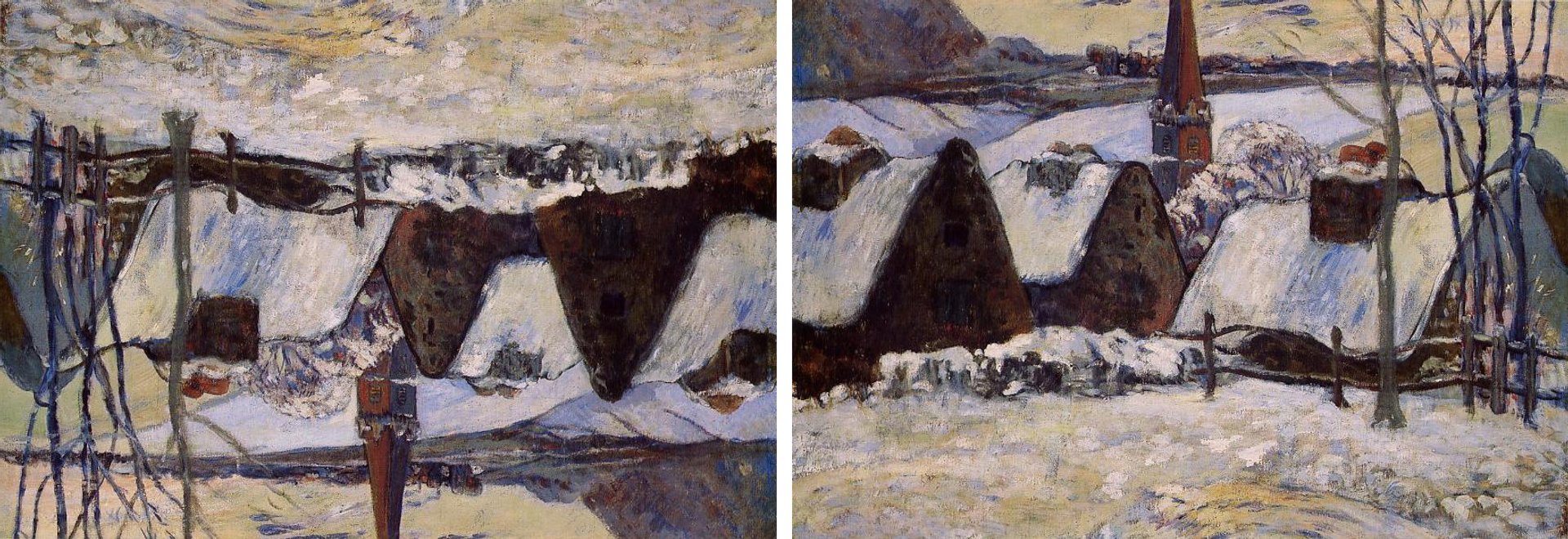 Paul Gauguin, Breton Village under the Snow (1894), the "correct" way up on the right Photo: Autour de l’impressionnisme