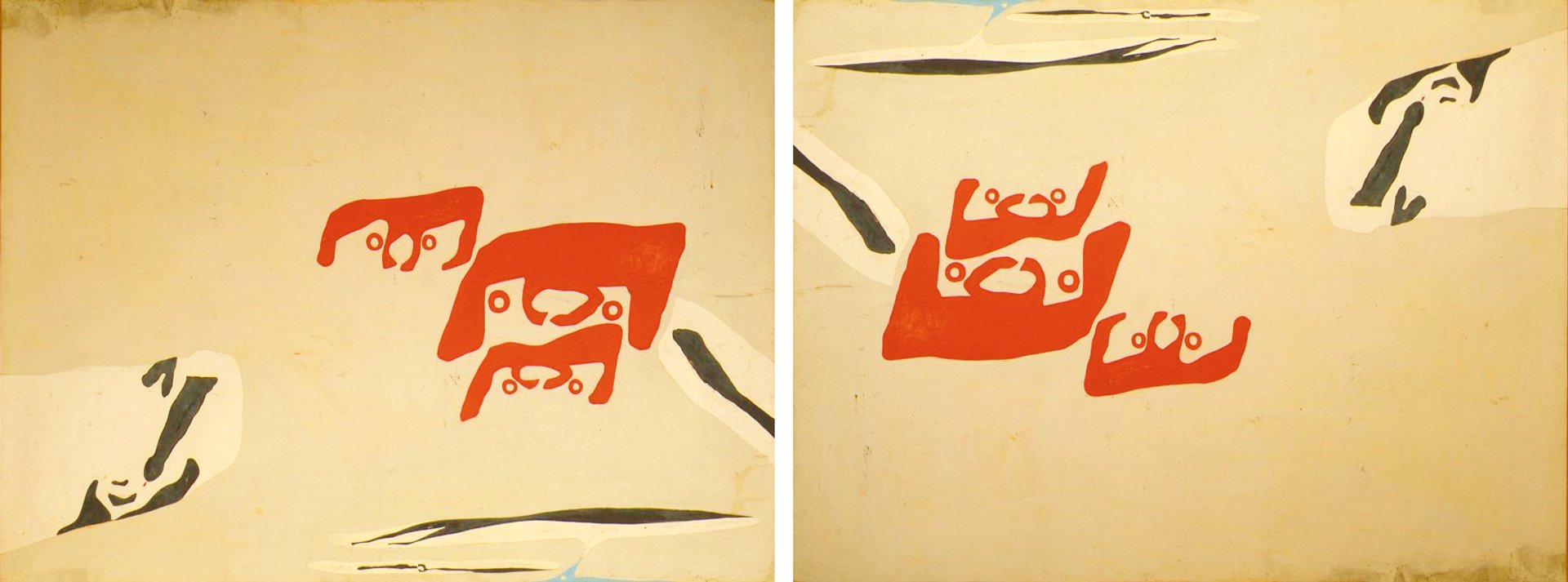 Salvador Dalí, Four Fishermen’s Wives of Cadaqués (1928), the "correct" way up on the right © Salvador Dali, Gala-Salvador Dali Foundation/DACS, London 2022