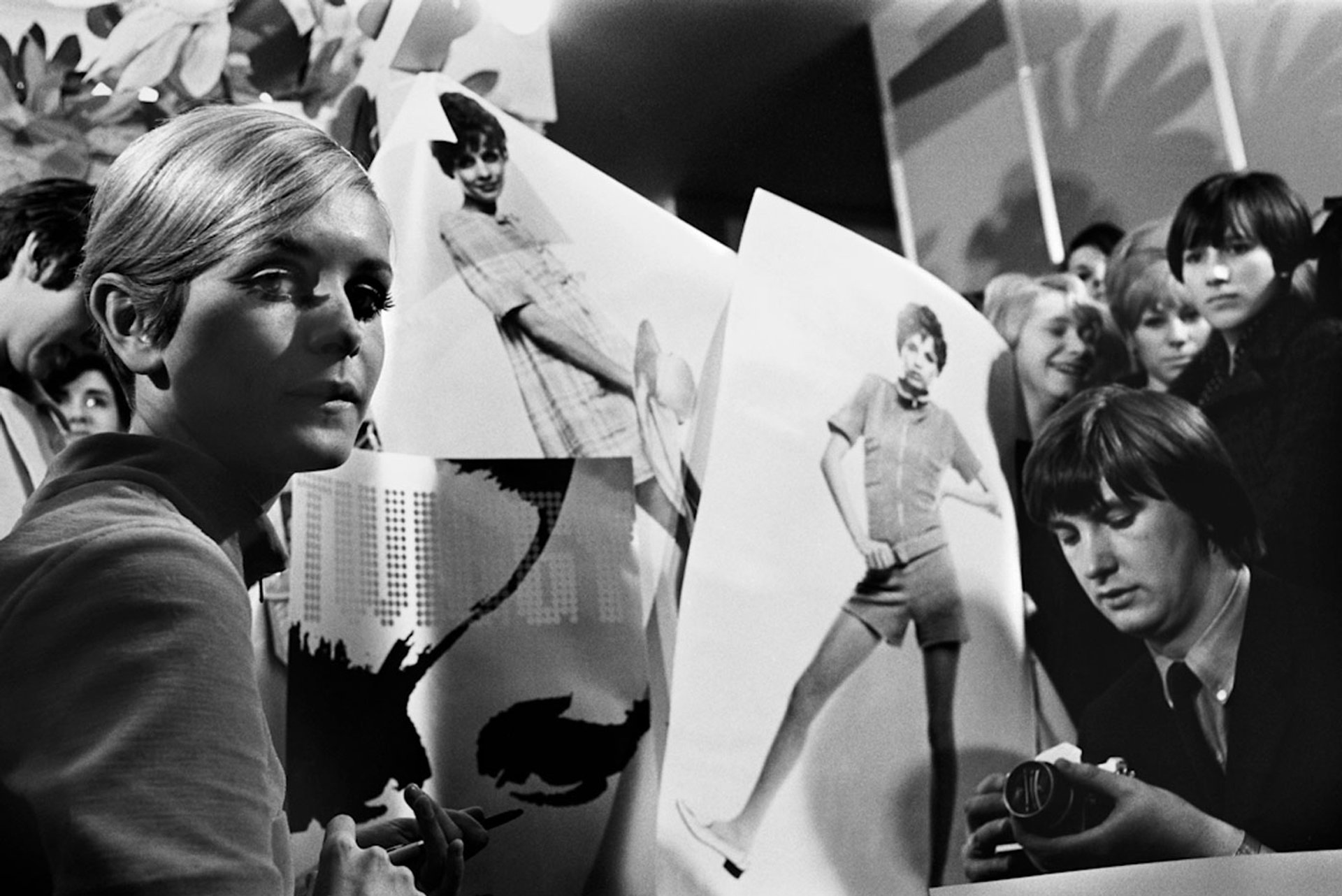 The supermodel Twiggy with the London press, 1970 © Marilyn Stafford