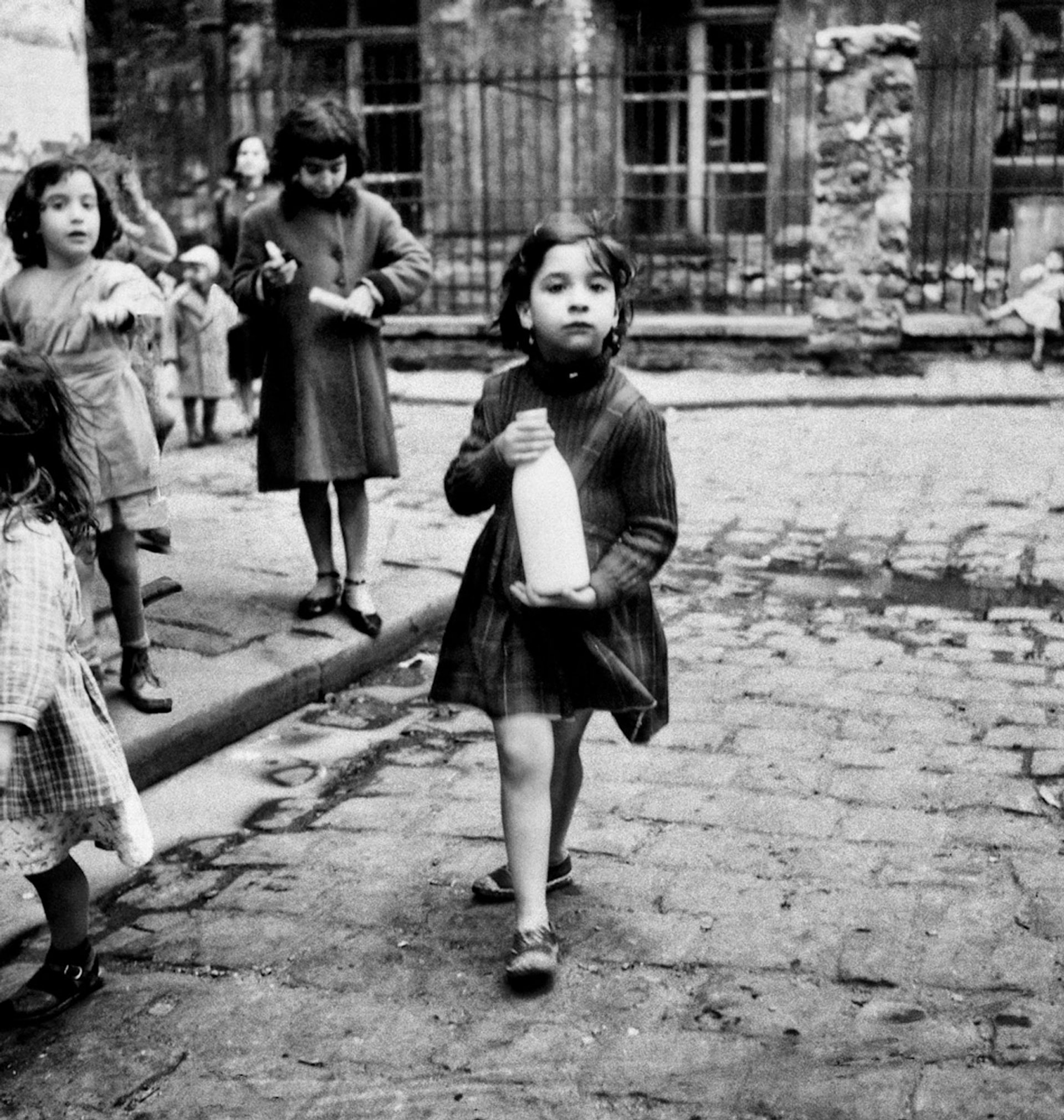Girl with a milk bottle, Cité Lesage-Bullourde, Paris, c1950 © Marilyn Stafford