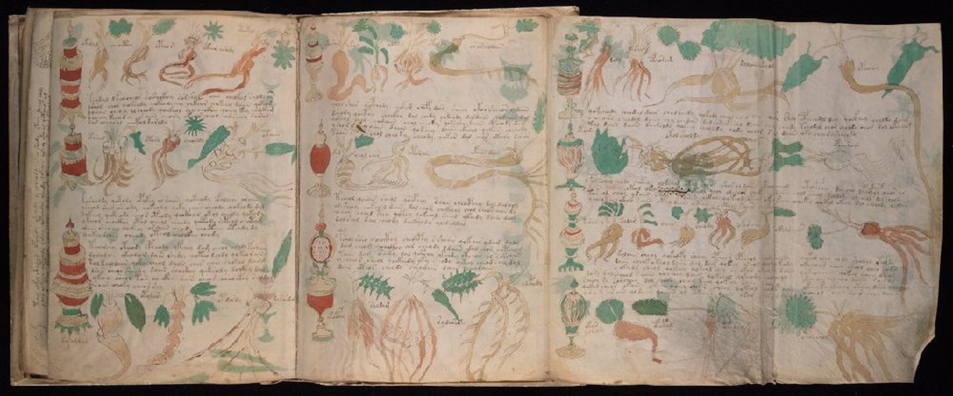 A spread from the Voynich Manuscript Beinecke Rare Book and Manuscript Library, Yale University, New Haven, Connecticut