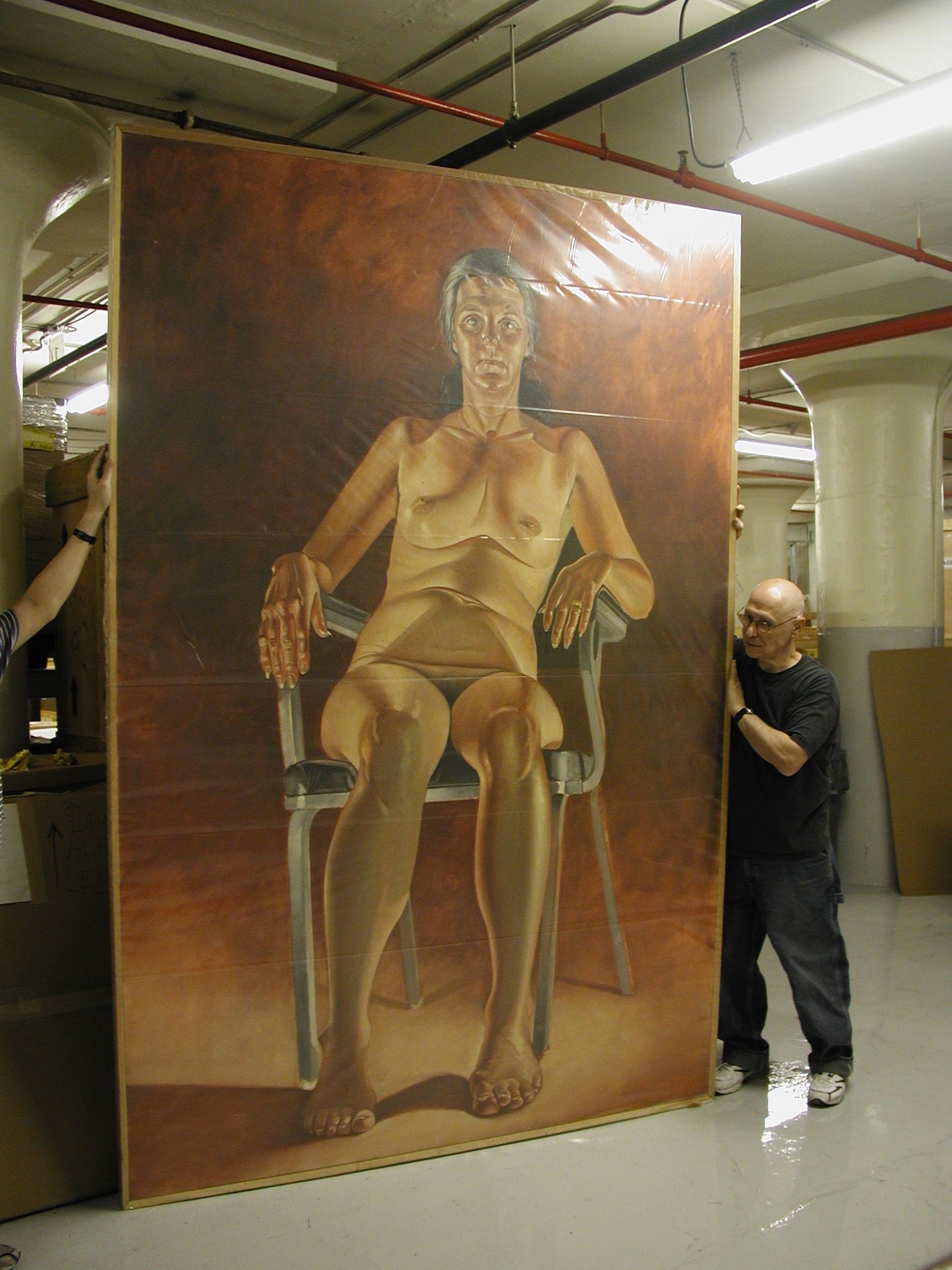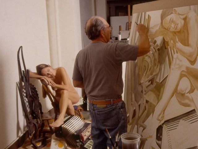 Alfred Leslie in his studio with one of his portraits Courtesy Bruce Silverstein Gallery