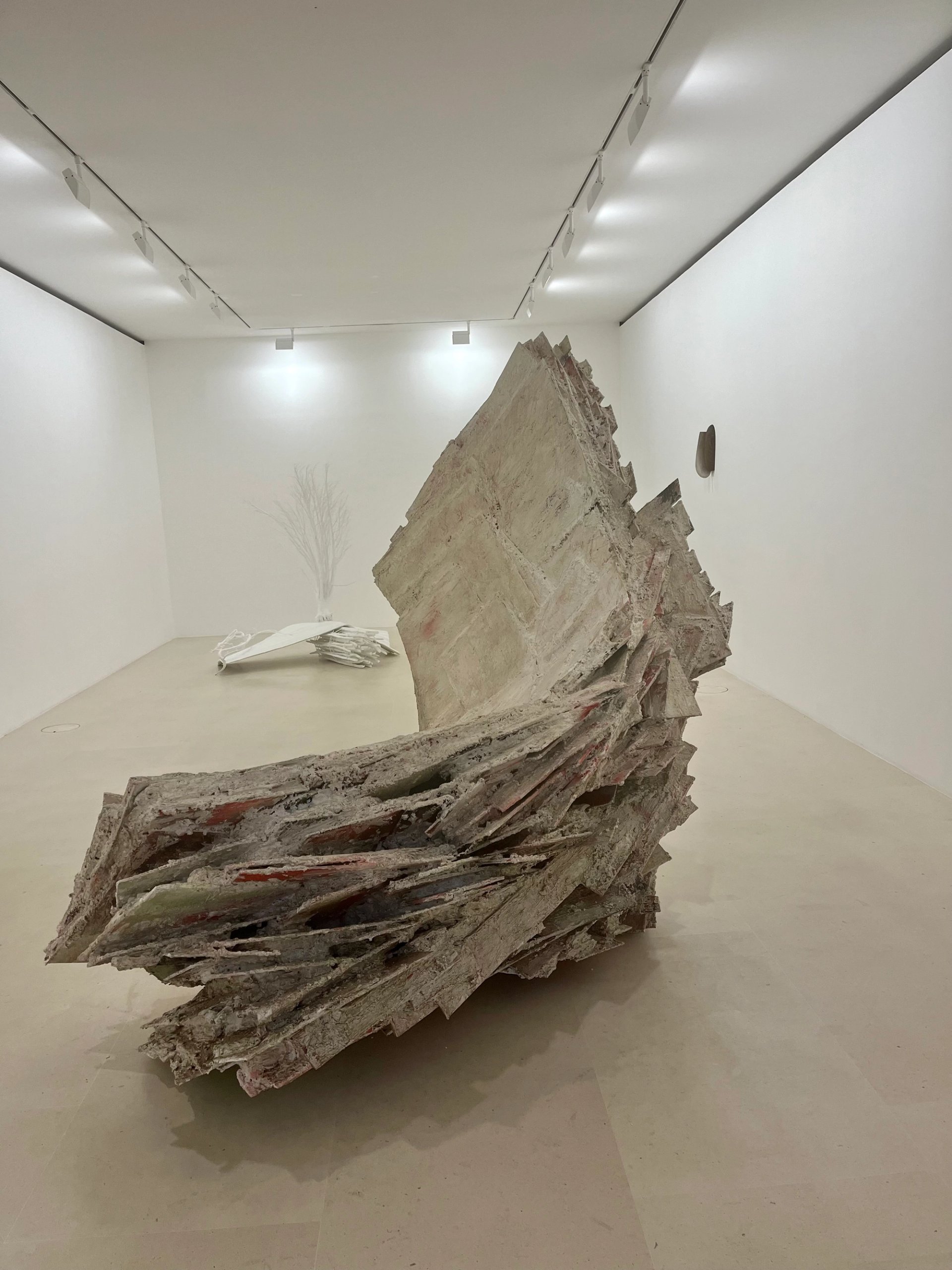 Installation shot with Phyllida Barlow's Hollow ()2022 and Rachel Whiteread's Untitled (Crease) (2021) in background.