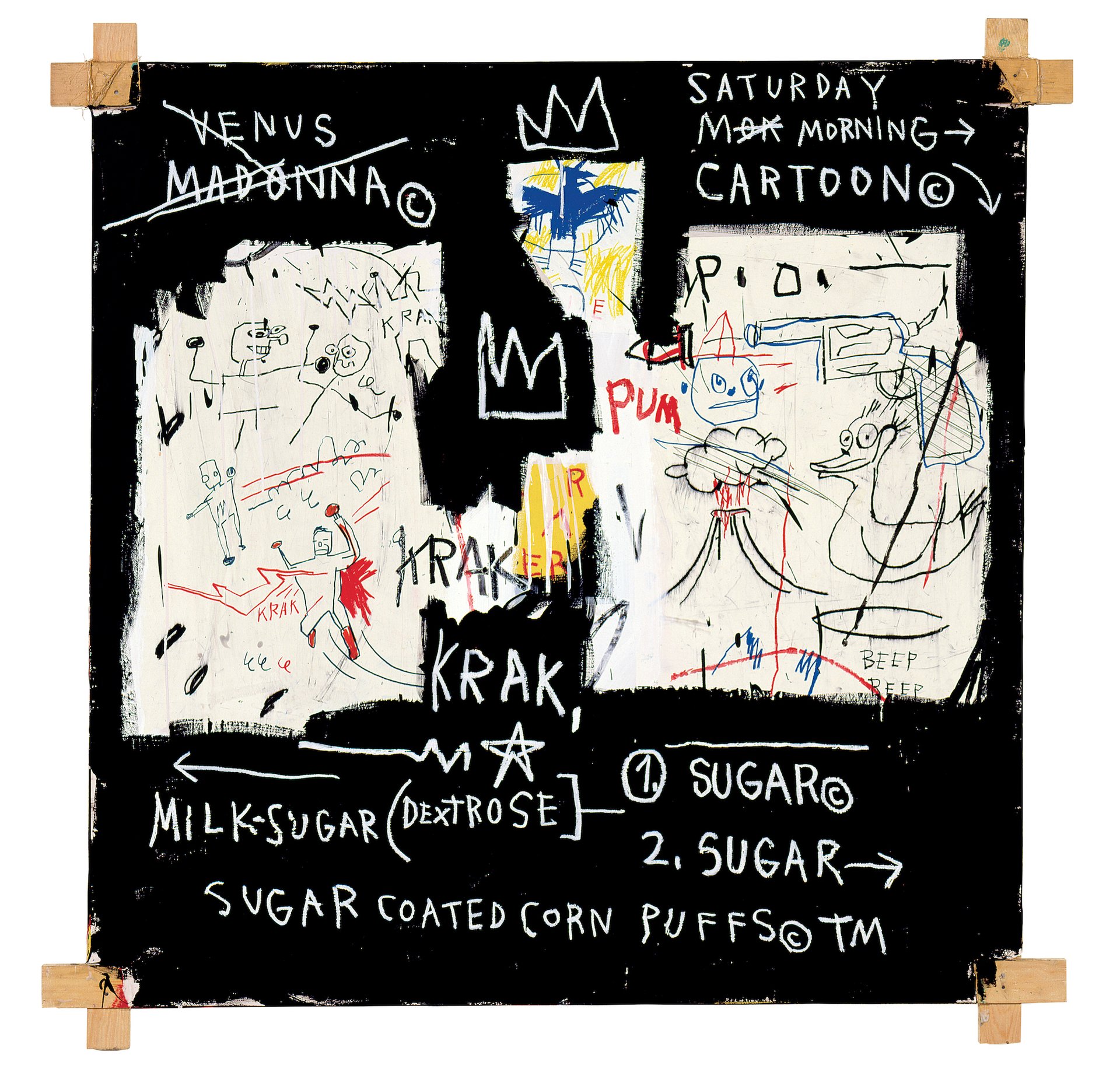Thirty-five years after Jean-Michel Basquiat’s death at age 27, he is perhaps more famous than ever before. Much of that fame is derived from his market, his tragic biography and the assimilation of both into globalised pop culture. From the $110m that Japanese billionaire Yusaku Maezawa paid for his skull painting Untitled (1982) and the Broadway show about his friendship with Andy Warhol, to the prolific licensing of his art for merchandising and the rapper Jay-Z name-dropping him (and collecting his work), Basquiat is everywhere.