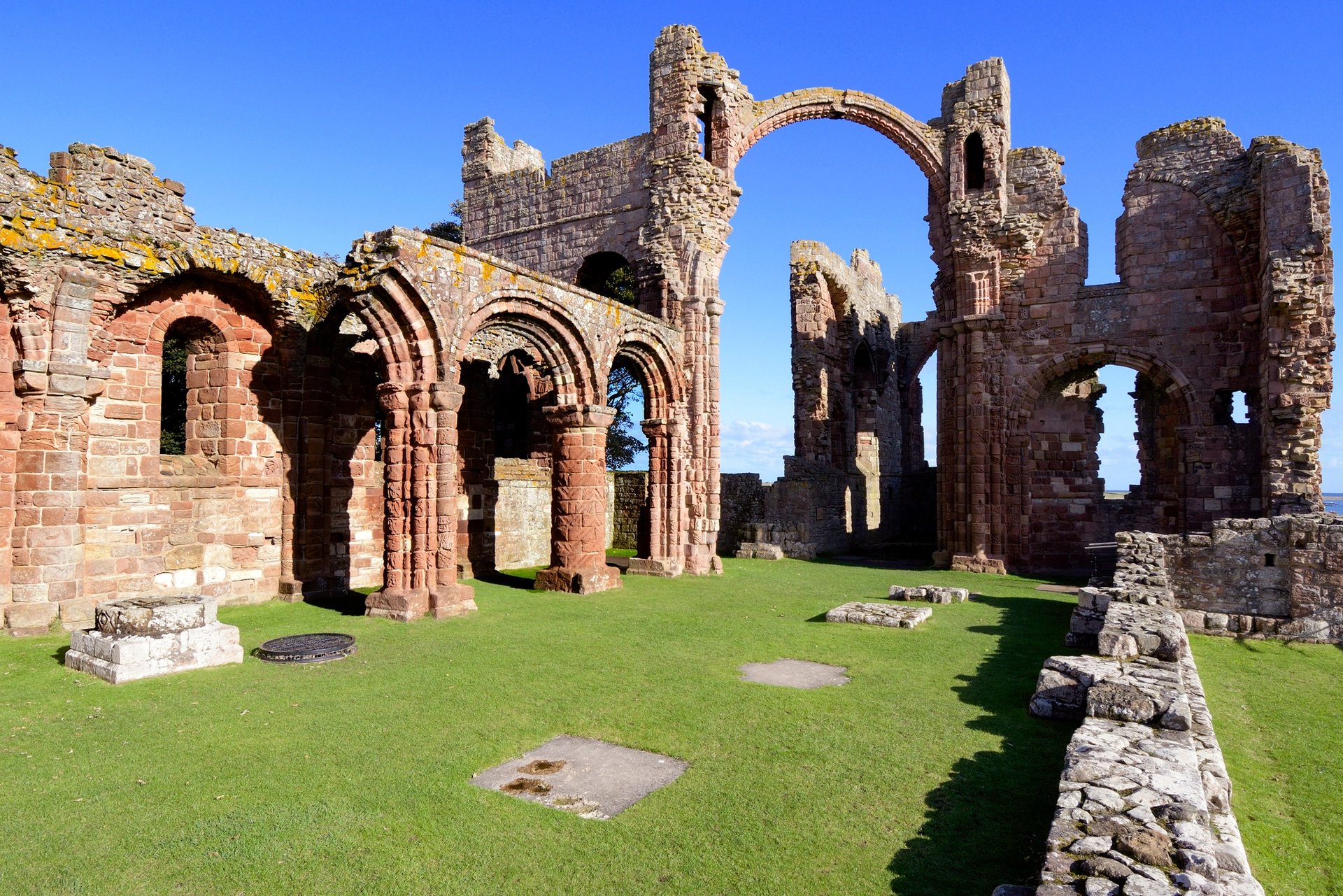 The spectacular 12th-century ruins on the island, still accessible only by causeway at low tide, date from a much later phase of the monastery founded around 634 AD. The church was rebuilt several times after most of the monks fled Viking raids which began in 793 AD, taking with them their greatest treasures including the miracle working body of Saint Cuthbert, now the heart of Durham Cathedral, and the world famous Lindisfarne gospels, now in the British Library.