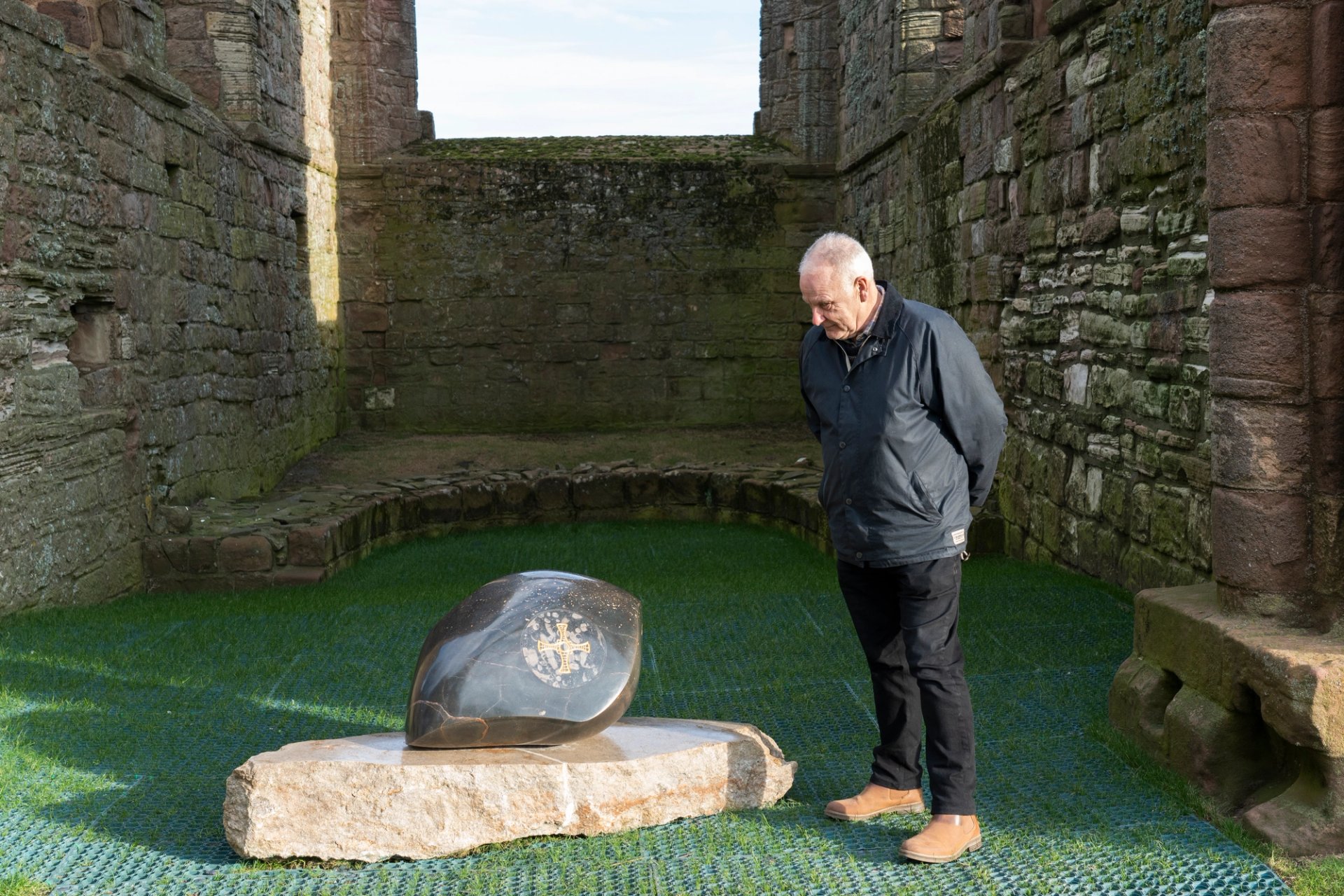 English Heritage will also unveil a new monument within the ruins, at the spot traditionally believed to be the site of Cuthbert’s original grave. The sculptor Russ Coleman has used a large basalt boulder found locally, inset with Frosterley marble referencing the saint’s grave slab at Durham. The boulder rests on another piece of local Swaledale stone, studded with fossils of sea creature.