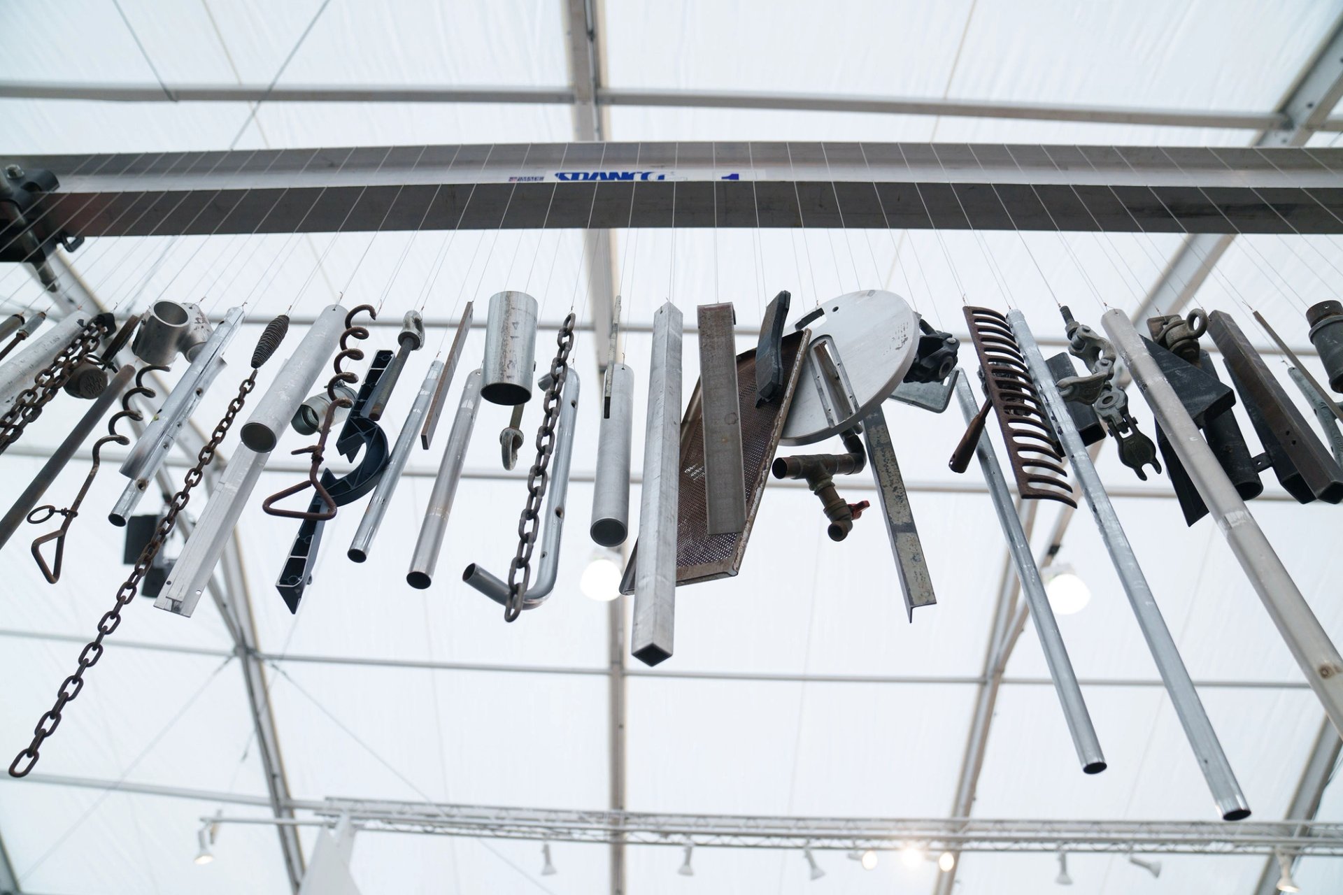 Virginia Overton, Untitled (spanco chime) (2022), at Bortolami Photo: Eric Thayer
