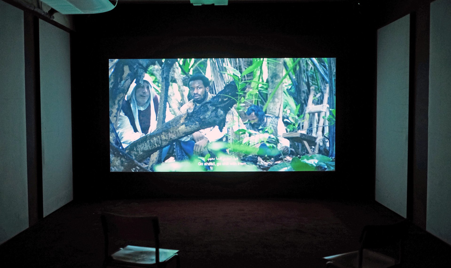 What is inspiring about Julien is not only how he pays tribute to decolonial thinking but also how he seemed more excited to see the film As British as a Watermelon (2019)—by a young Zimbabwean UK-based artist, who goes by the name mandla rae—than talk about his own work. In the installation, made cosy with a furry carpet and plants strung with lights, the semi-fictive narrative of mandla rae’s journey through adoption and asylum was projected. "How colonised must you be not to speak your own name?” asks the non-binary artist, who recounts the changing of their adoptive name (Bridget), while hacking at a watermelon with knives.