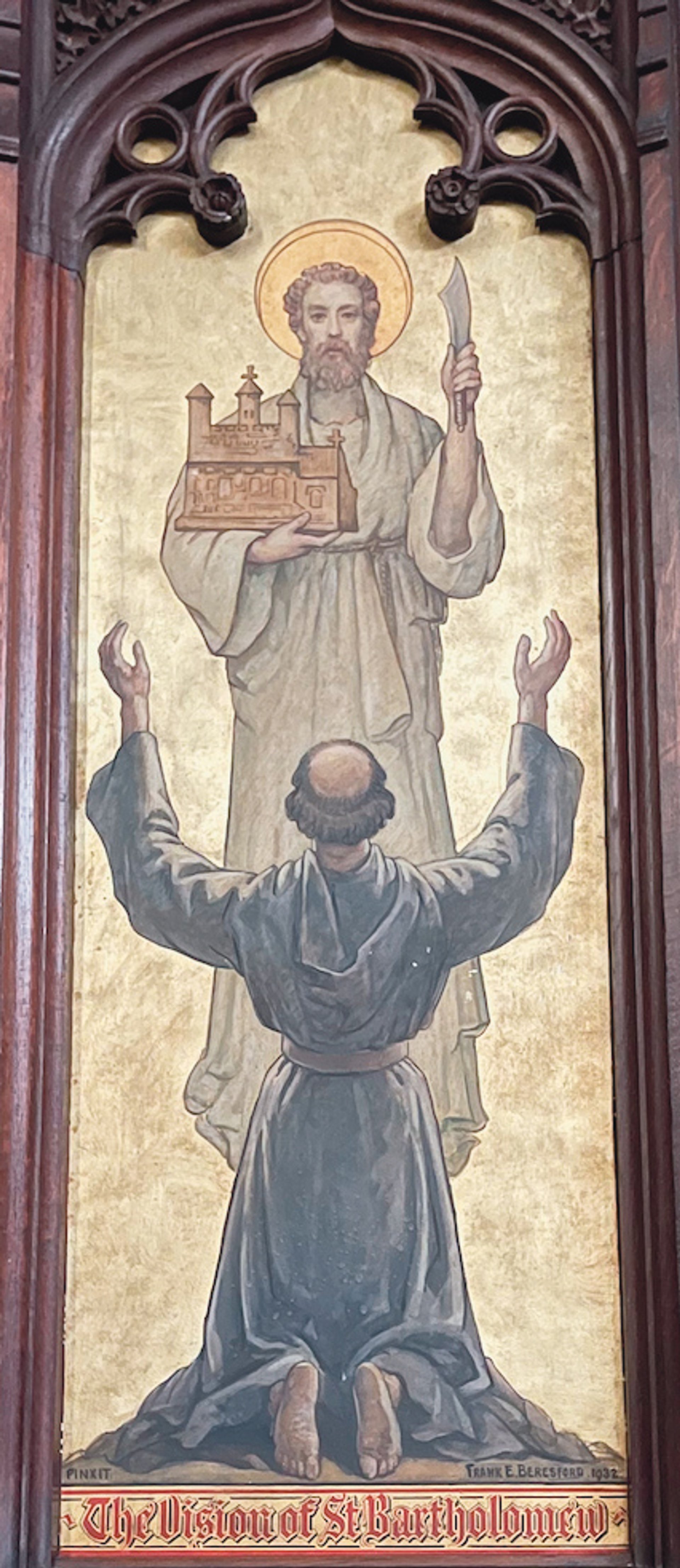 Rahere’s vision of St Bartholomew, from the choir panels by Frank Beresford (1932) © Charlotte Gauthier