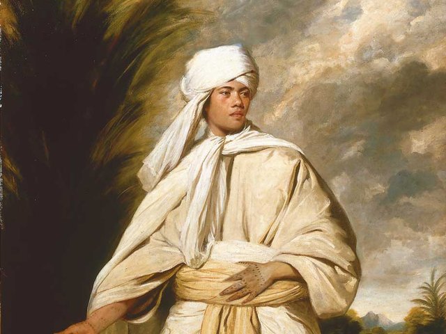 The UK’s Export Reviewing Committee, which recommended the export licence deferral, describes Omai (around 1776) as “among the most original, ambitious and best-preserved portraits” by Joshua Reynolds, “one of the most influential European artists” of the 18th century. The grandiose painting depicts the young Tahitian man, Mai (also known as Omai), who arrived in Britain with Captain Cook in 1774.