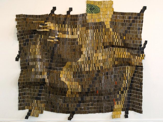 Anatsui has also used found materials ranging from old milk tins, railway sleepers, driftwood, iron nails and printing plates. “Repurposing found materials into dazzling works of abstract art, Anatsui’s work explores themes that include the environment, consumption and trade,” says a Tate statement.