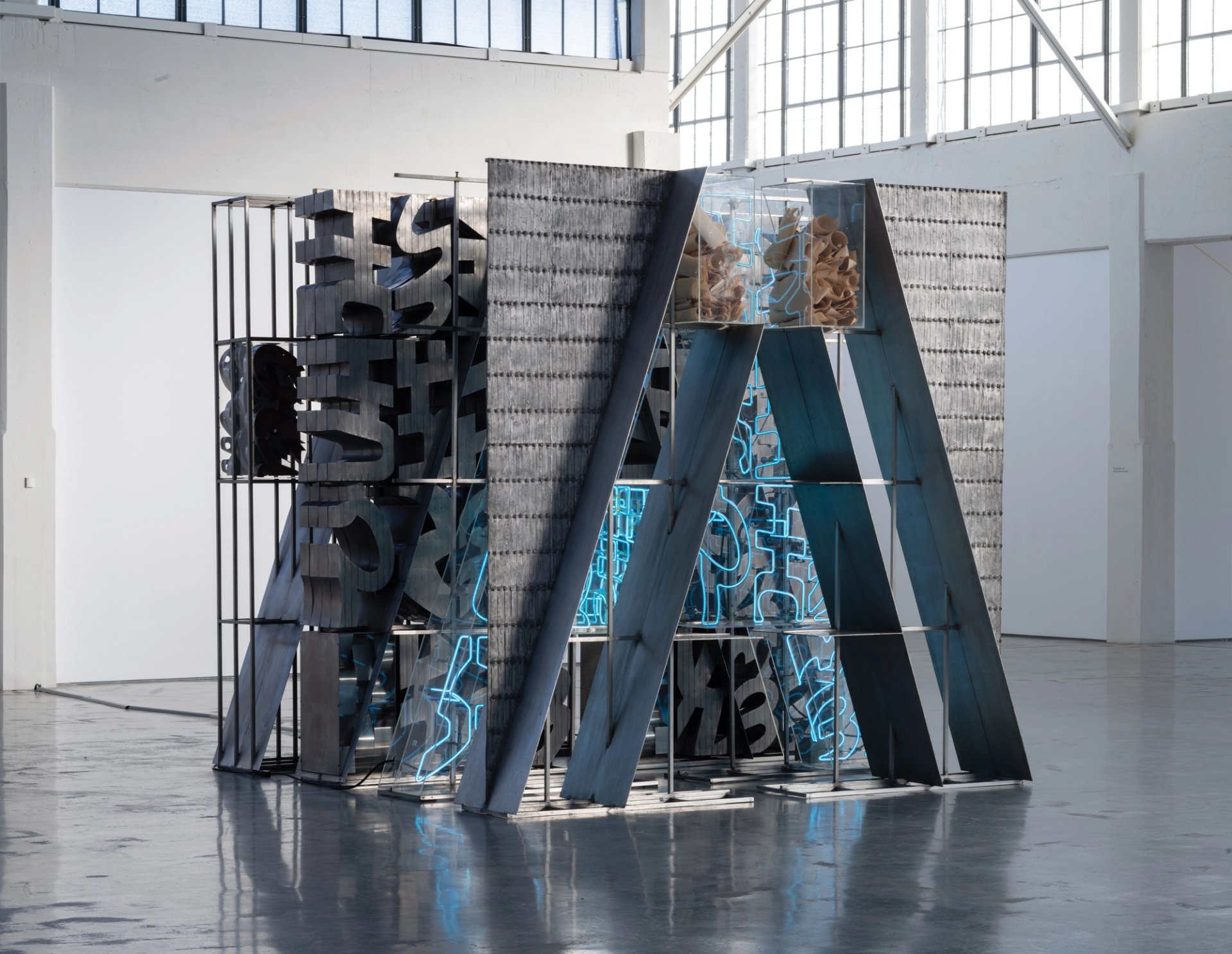 Chryssa’s magnum opus, The Gates to Times Square (1964-66), is the show’s centrepiece, a monumental work in welded stainless steel, neon and plexiglas © Estate of Chryssa. Photo: Bill Jacobson Studio, NY; Courtesy of Dia Art Foundation