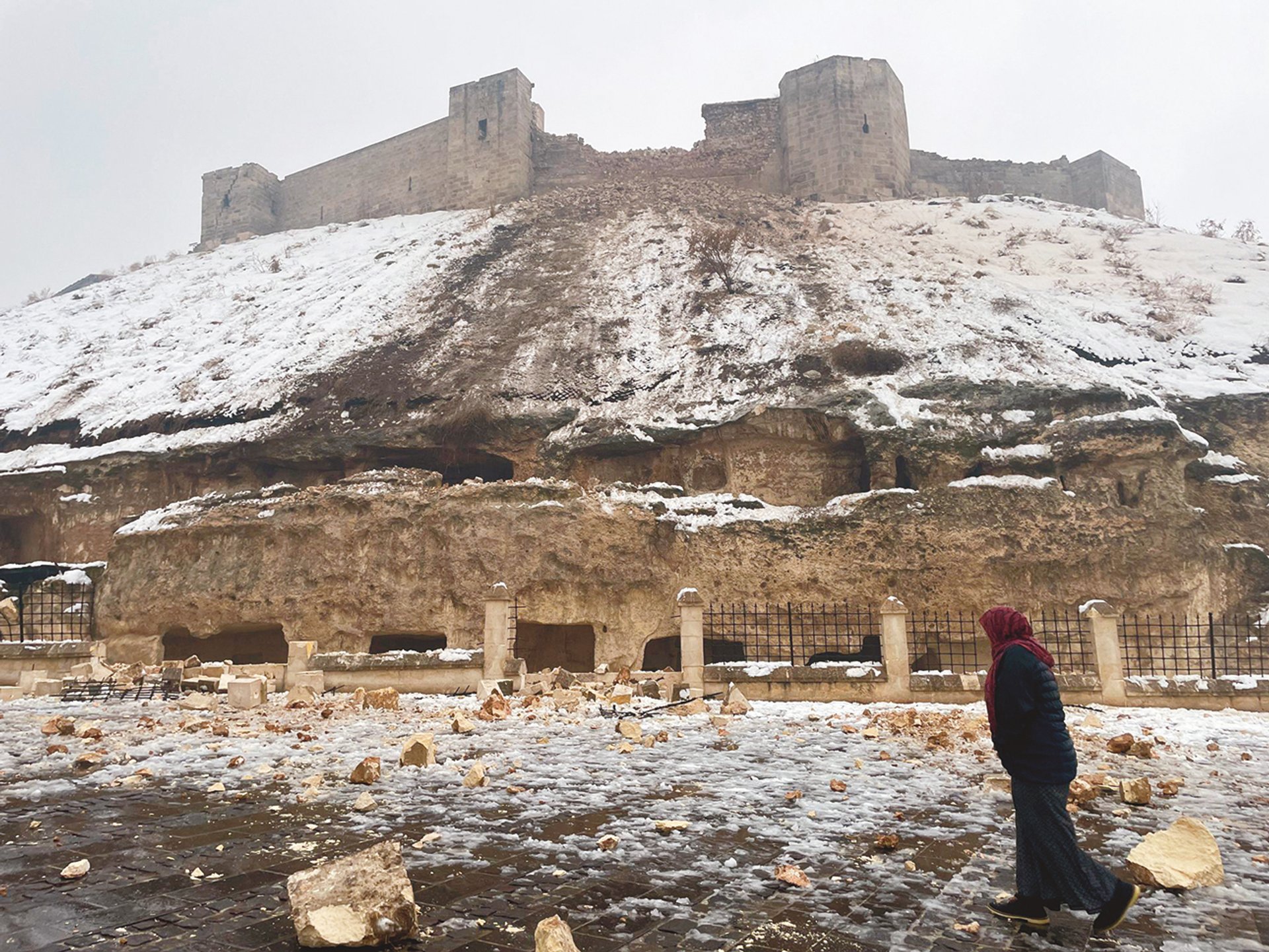 Gaziantep Castle, a Hittite Empire fortress developed into a Roman-Byzantine construction and expanded in the fifth century AD, sustained heavy damage Photo: Mehmet Akif Parlak/Anadolu Agency via Getty Images